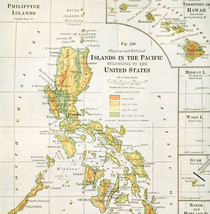 1920 Map Pacific Islands United States Hawaii Territory Physical Political DWQ4