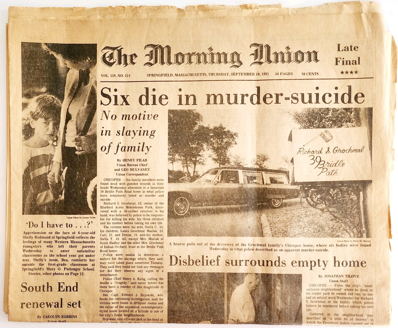 1981 Grochmal Family Murder Suicide Newspaper Morning Union Chicopee Mass DWJJ