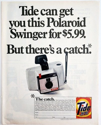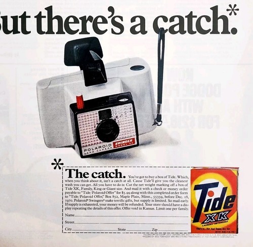 1970 Polaroid Land Camera Swinger Model 20 Advertisement Tide Photography DWII18