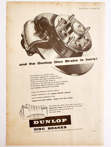 1957 Dunlop Tires Disc Brakes Import Advertisement Autocar Automobilia DWPP2