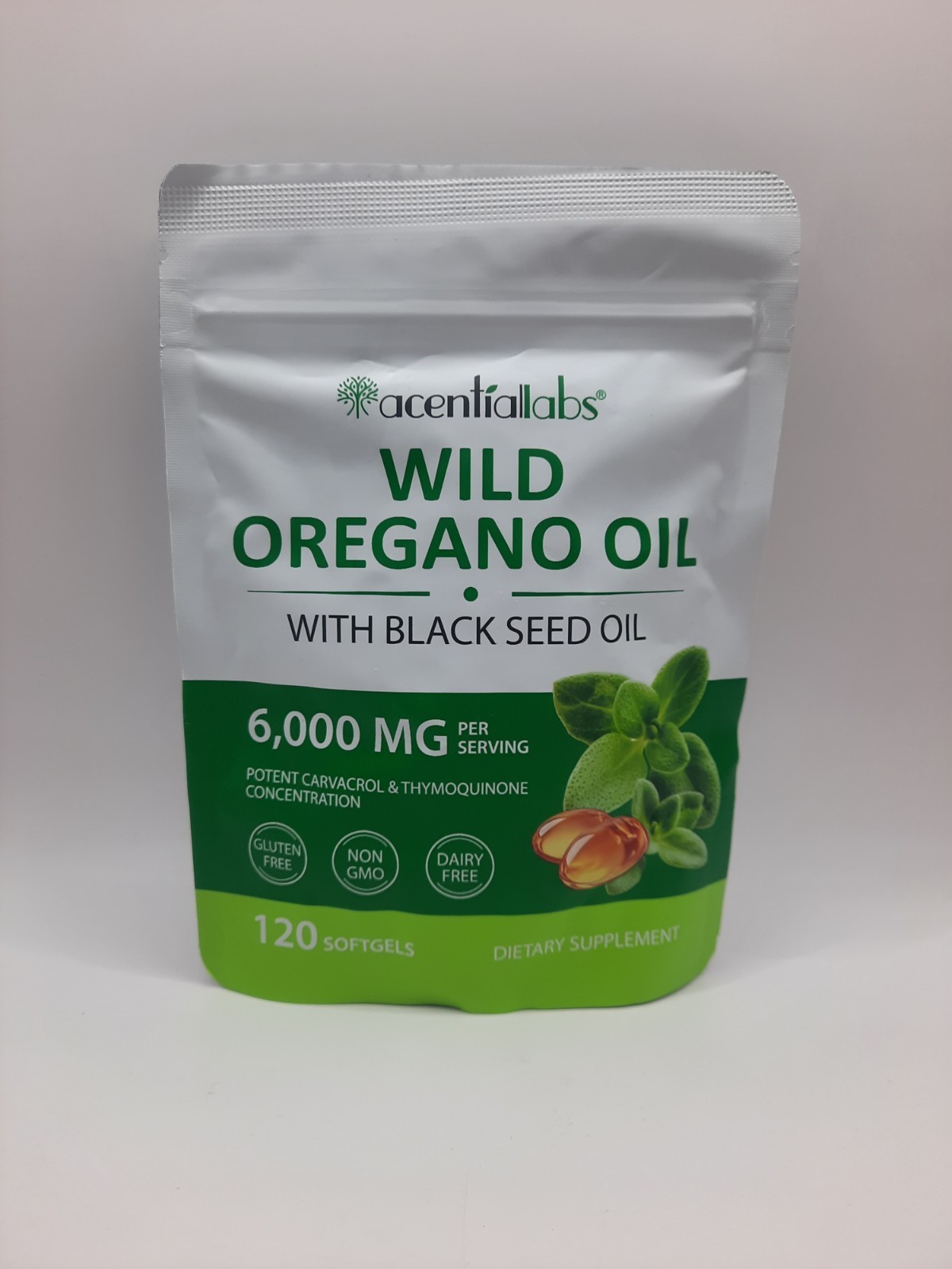 ACENTIALLABS Wild Oregano Oil 6,000mg with Black Seed Oil - 120 SG Exp 11/2026