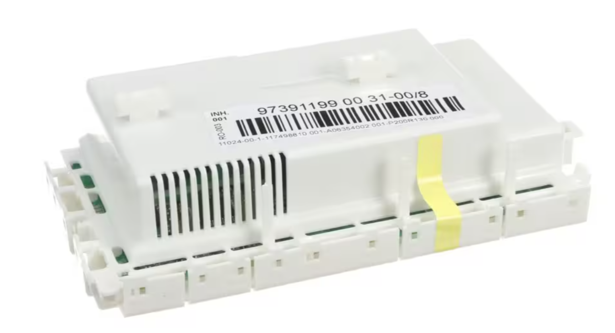The Frigidaire 97391199 00 31-00/8, A06354002 Configured Control Board Assembly is the pre-programmed electronic control board that manages core washer and dryer operations. It ensures accurate cycle selection, timing, motor control, and safety functions. If your appliance is experiencing issues such as failure to start, incorrect cycle behavior, or displaying fault codes, replacing the control board can restore reliable performance.