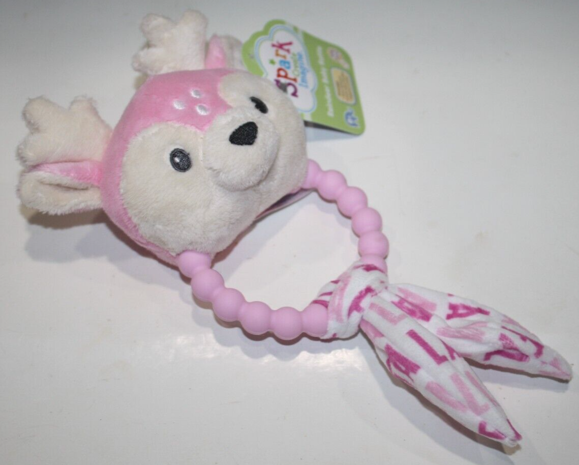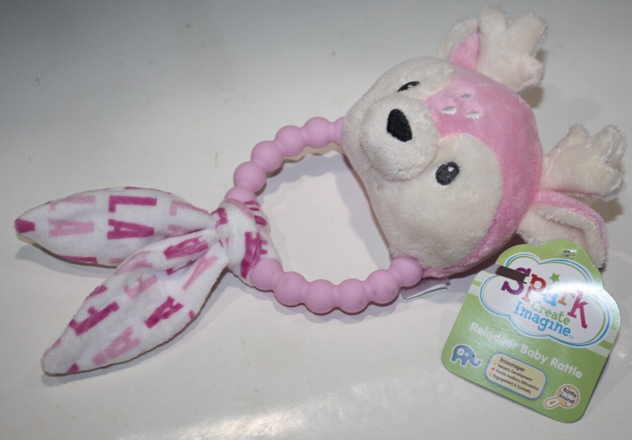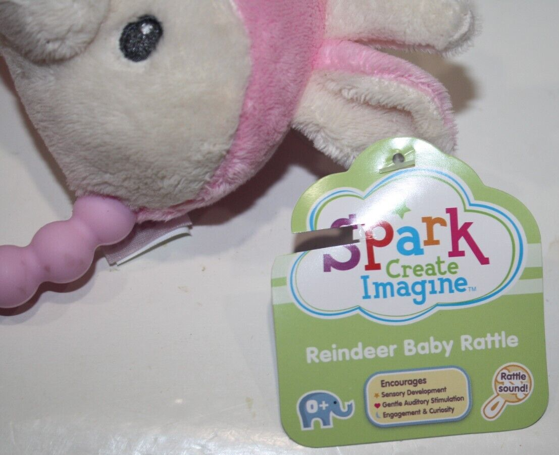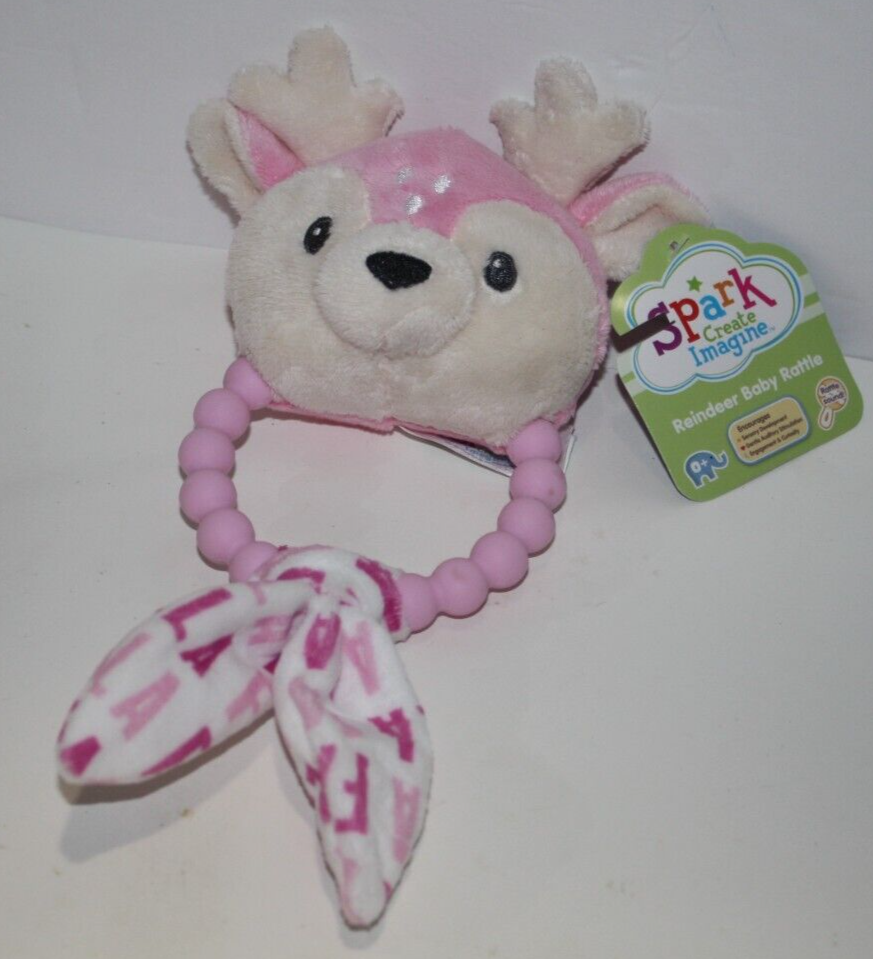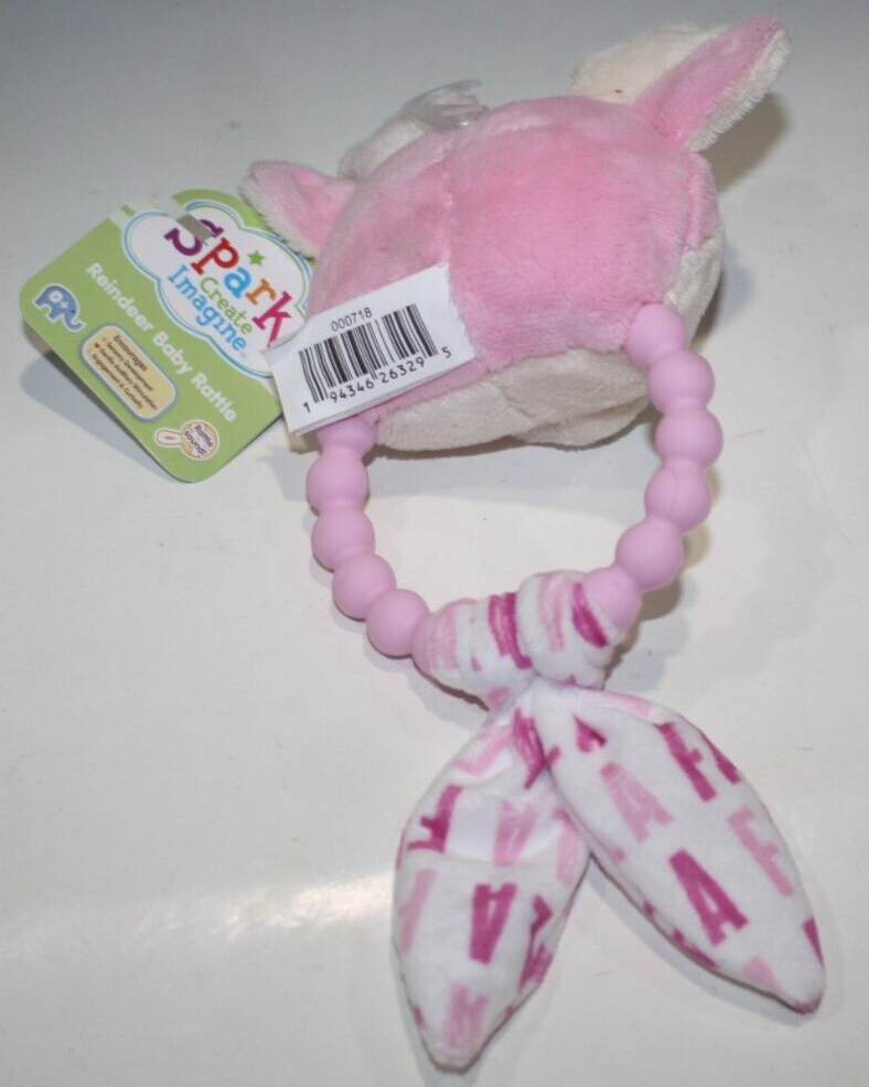 Spark Create Imagine Reindeer Baby Rattle Teether 9" Pink Plush Toy Walmart NEW