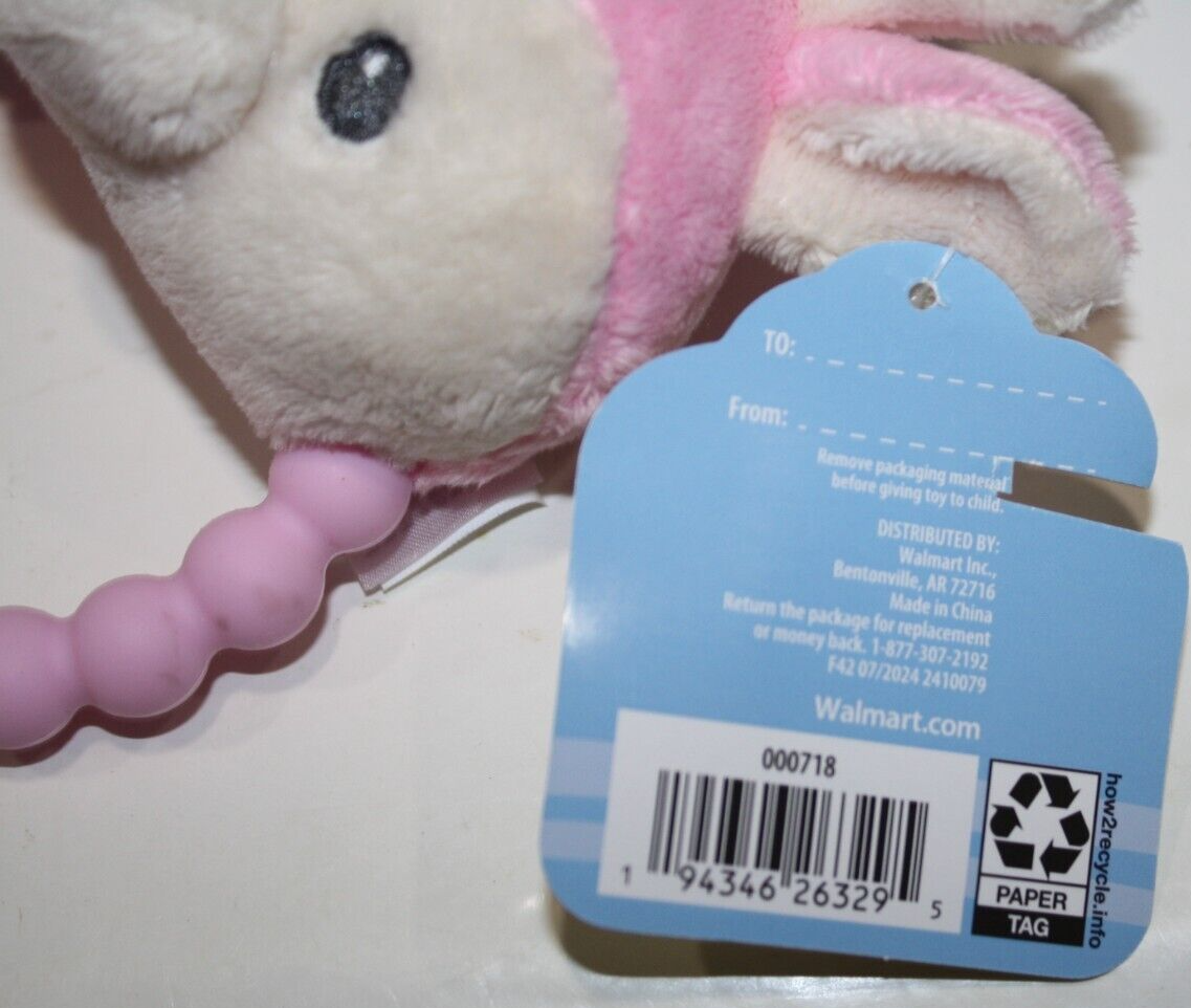 Spark Create Imagine, Reindeer Baby Rattle, Teether, Approx 9 inch, Pink Plush, Stuffed Animal, Soft Toy, Walmart, NEW with Tag, 2024