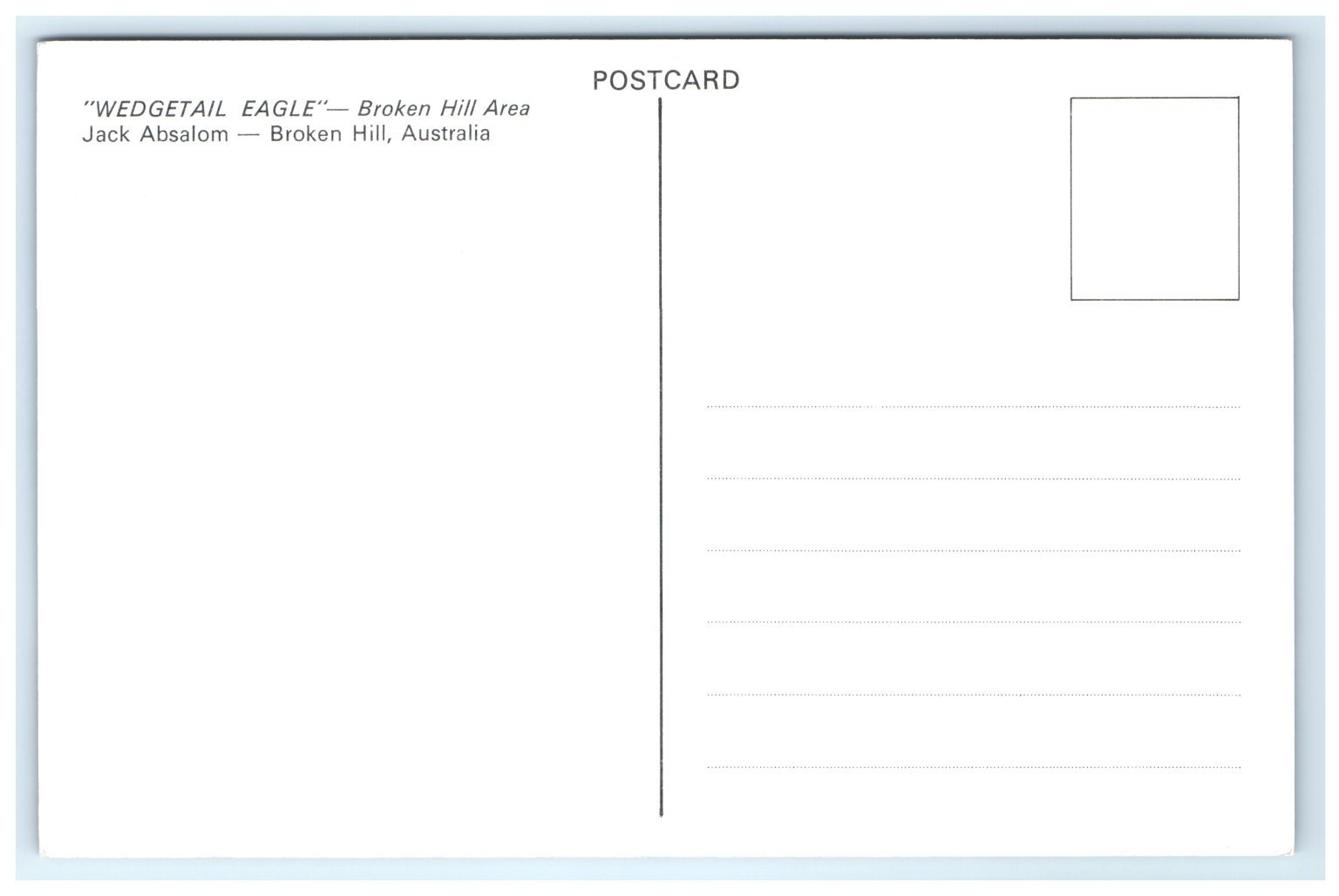 Printed using high-quality lithographic techniques, this postcard preserves Jack Absalom's signature style and attention to natural detail. The scene conveys a sense of solitude and wilderness unique to the Australian outback, making it a distinctive collectible piece. The back of the postcard is blank and unposted, with clear markings indicating the title "WEDGETAIL EAGLE" - Broken Hill Area and the artist's name, adding authenticity and provenance to this item.