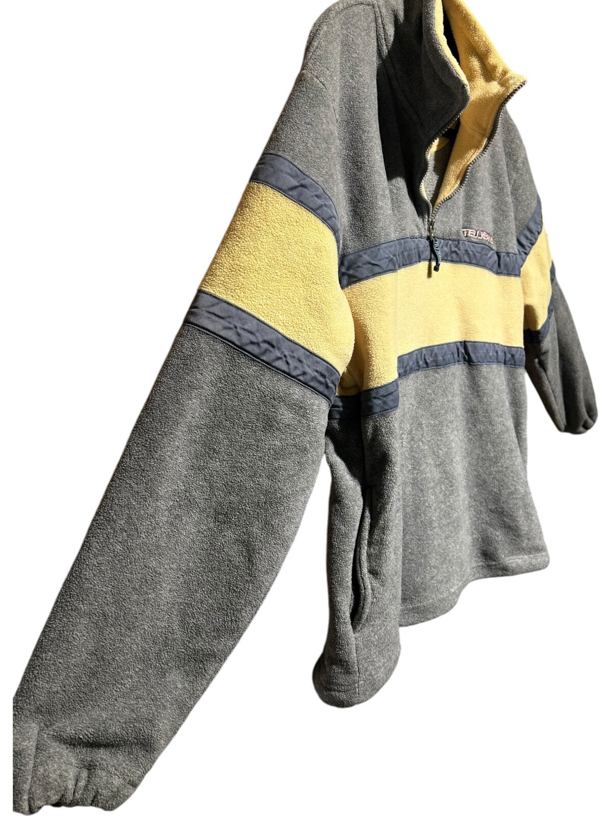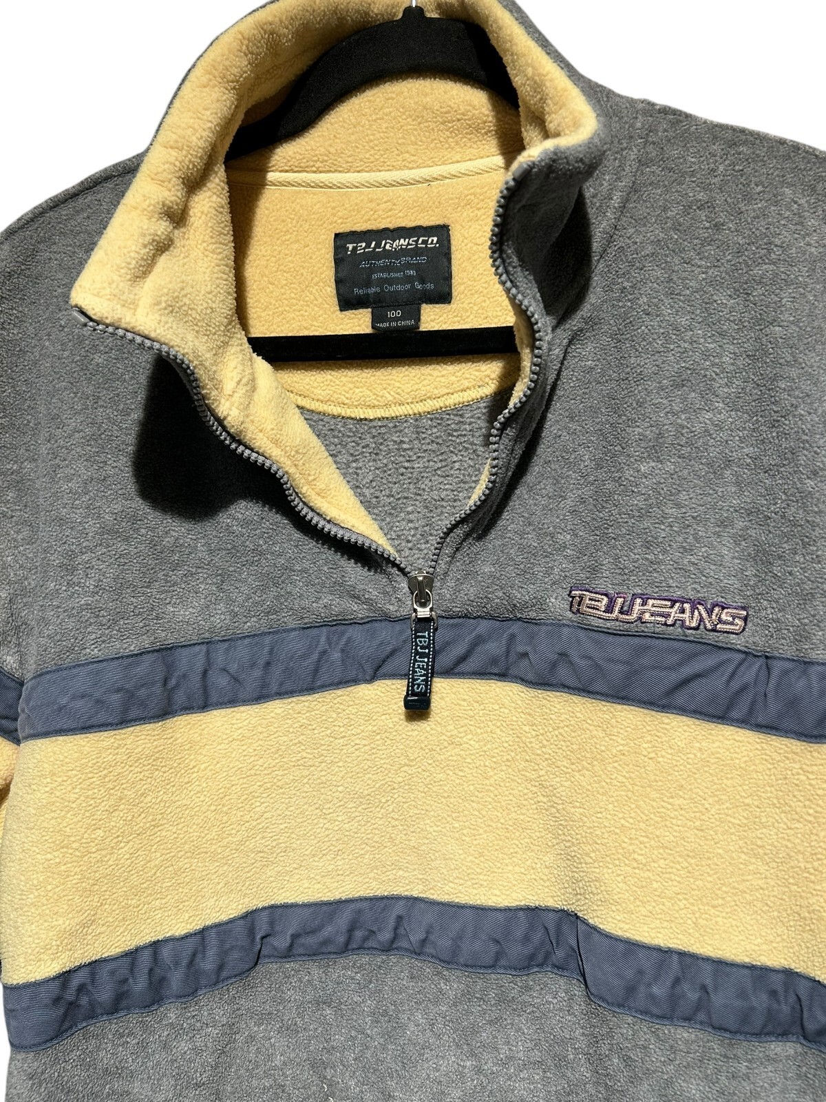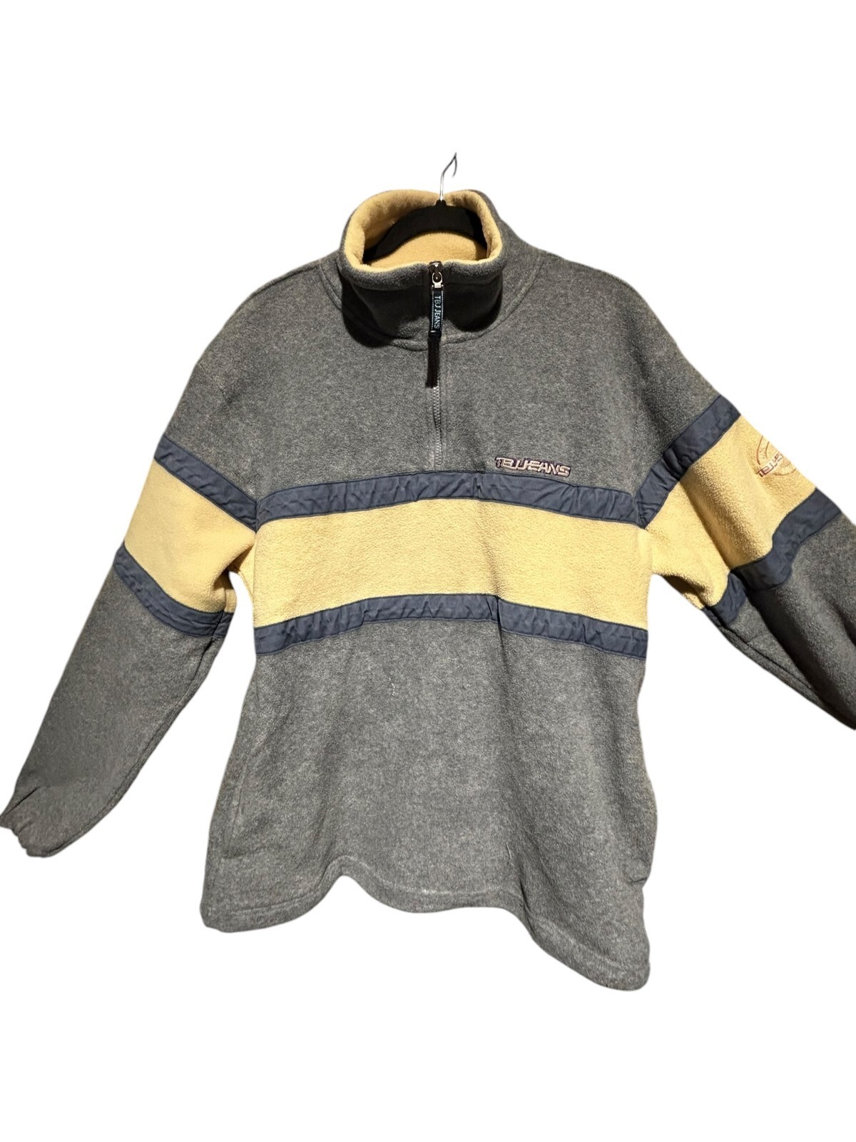 tbj jeans co. 1/4 zip fleece pullover jacket steel blue yellow size 100 (Men's M)