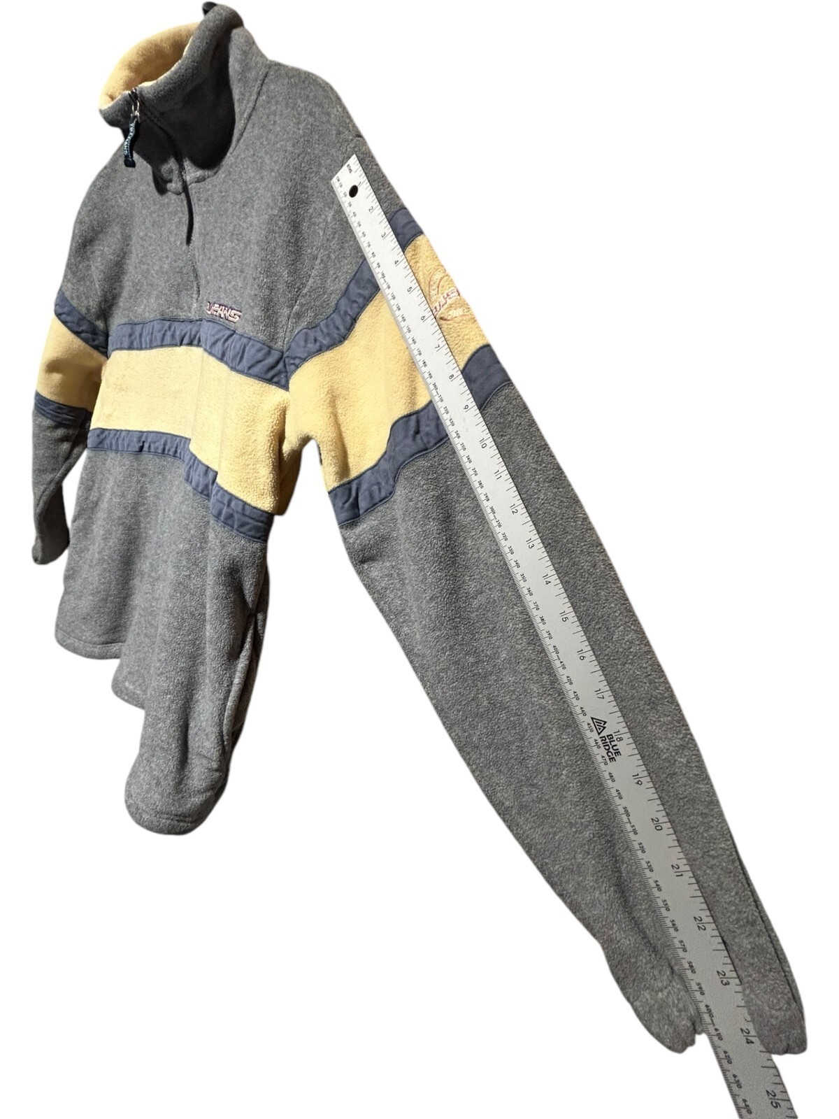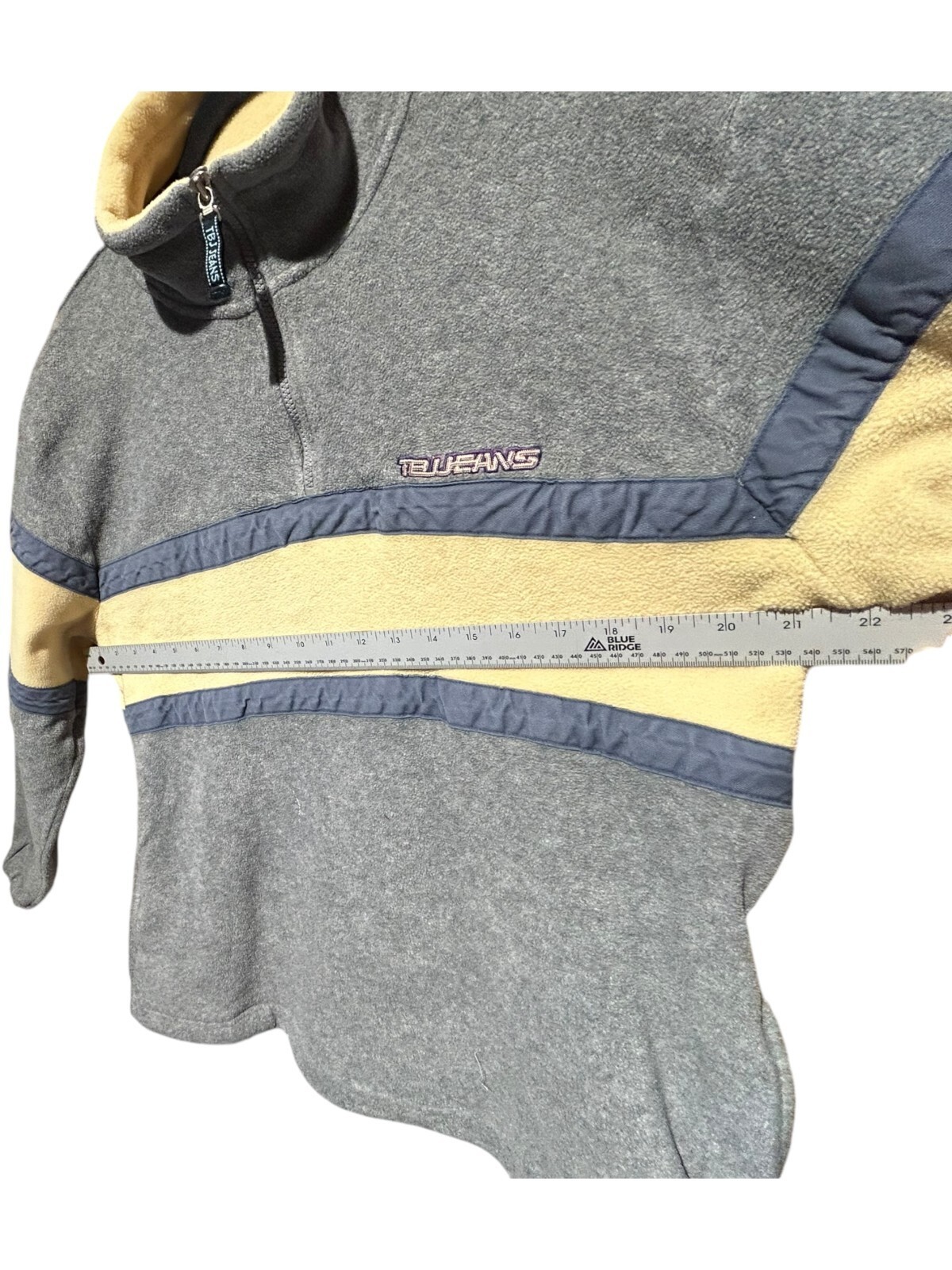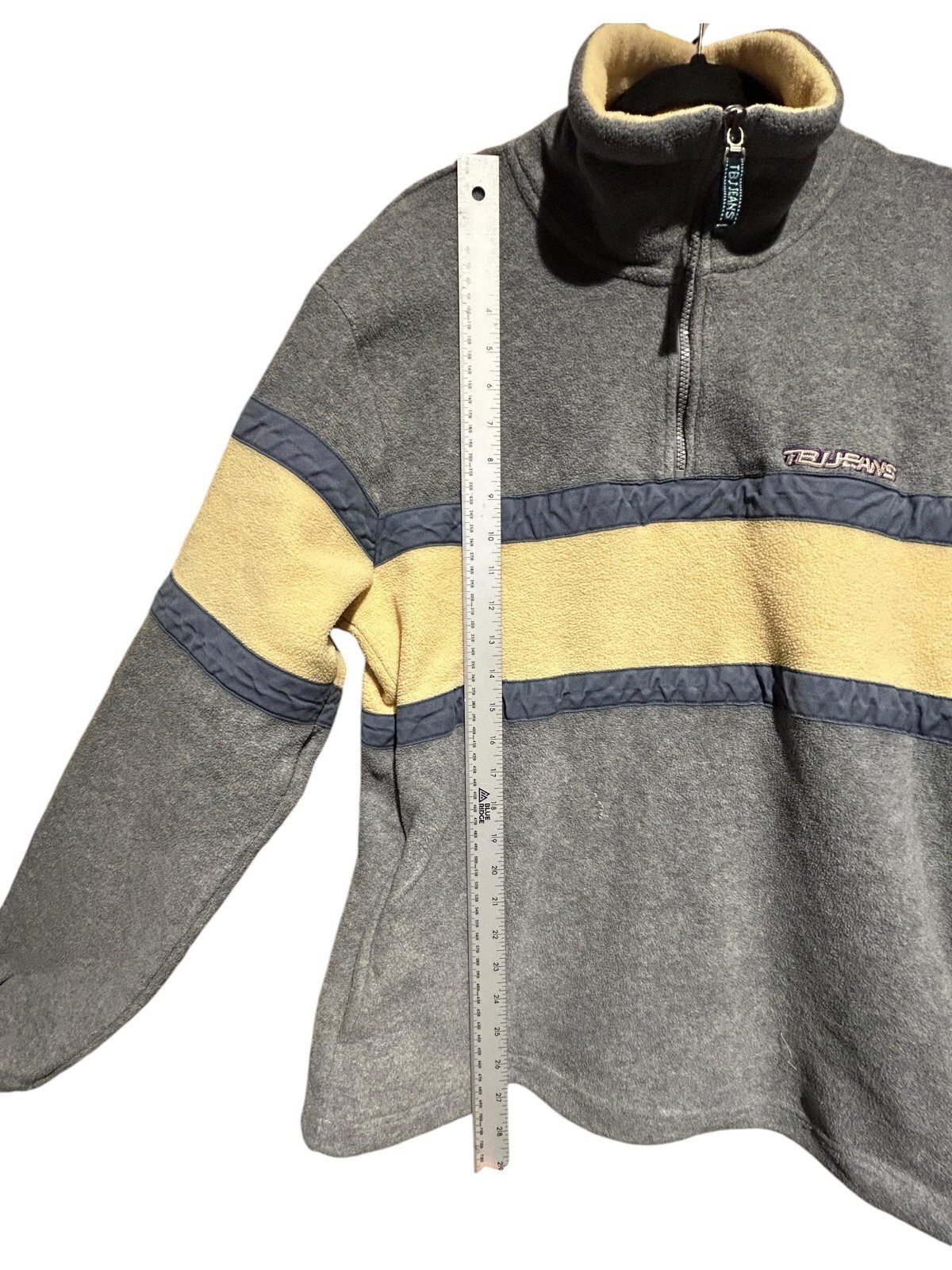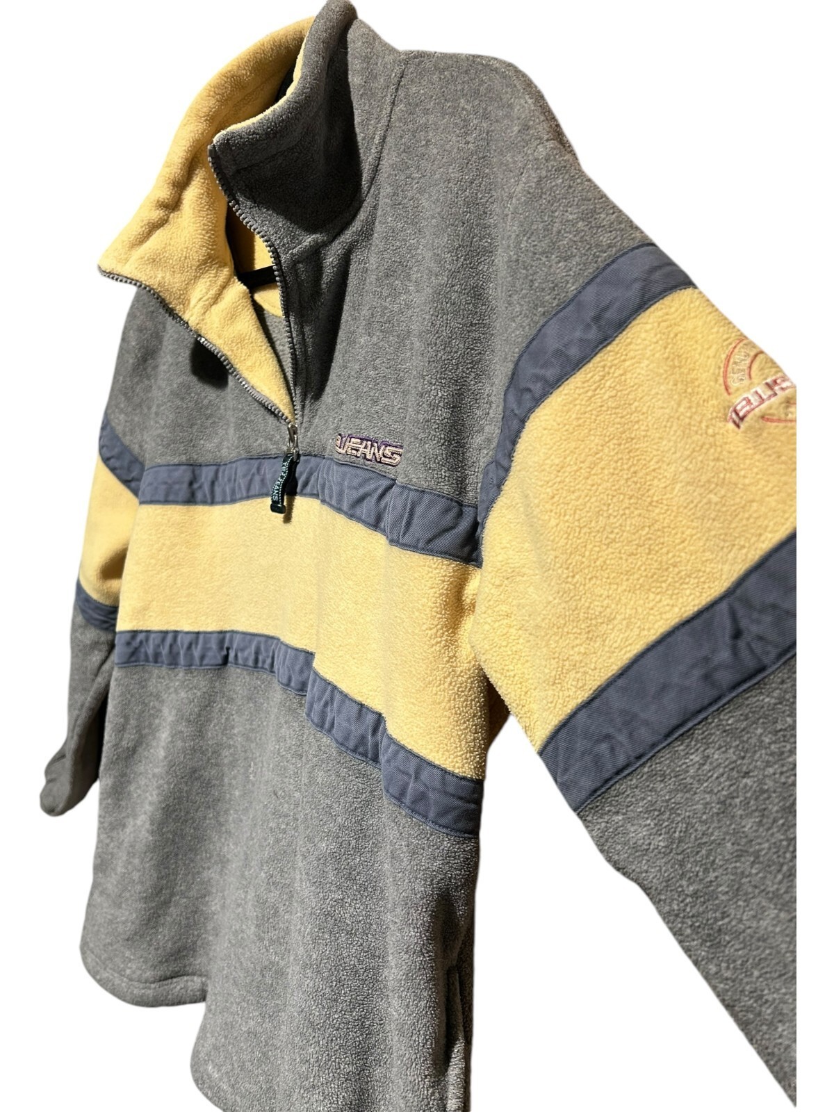 tbj jeans co. 1/4 zip fleece pullover jacket steel blue yellow size 100 (Men's M)