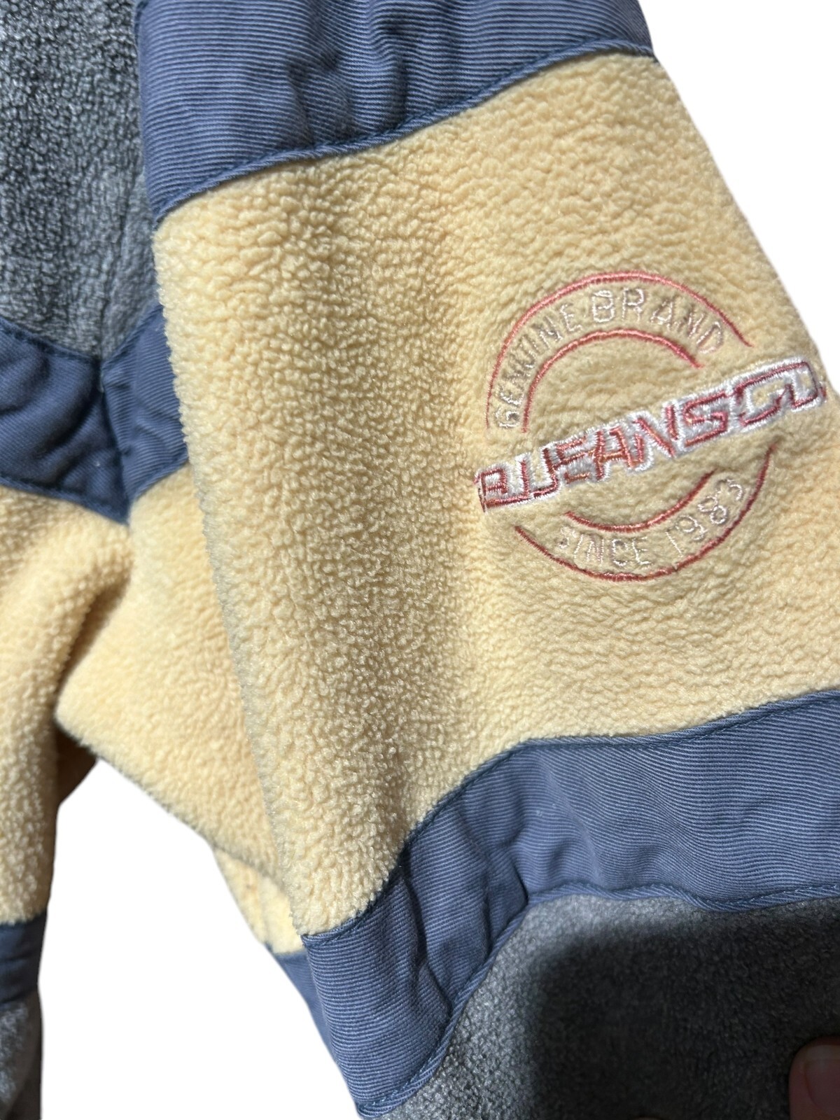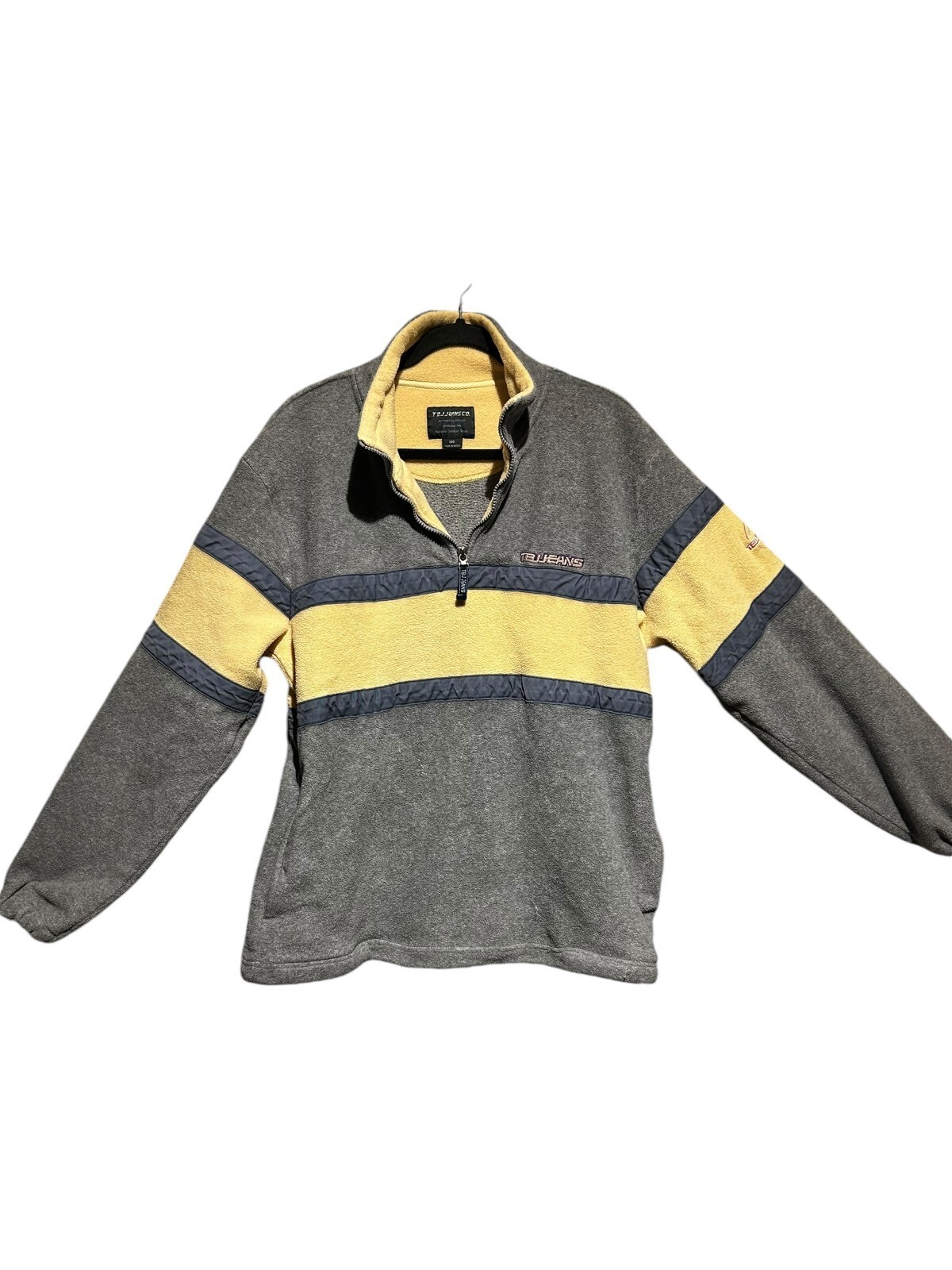 tbj jeans co. 1/4 zip fleece pullover jacket steel blue & yellow Men's MED