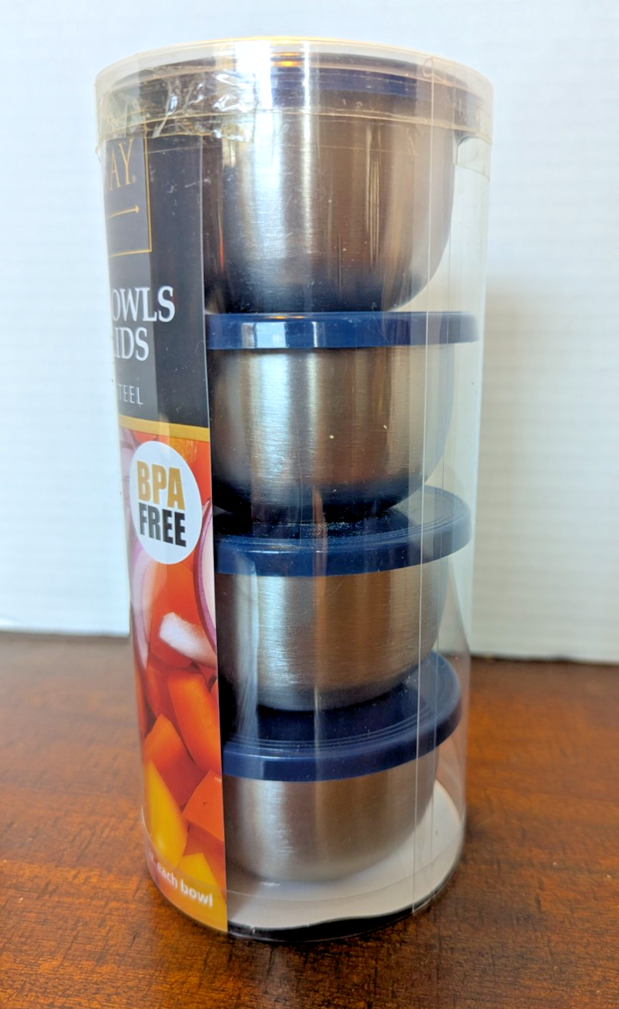Bombay Prep Bowls Blue Lids 4pc Stainless Steel BPA-Free Plastic 4.4 oz Each NEW
