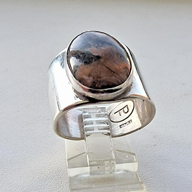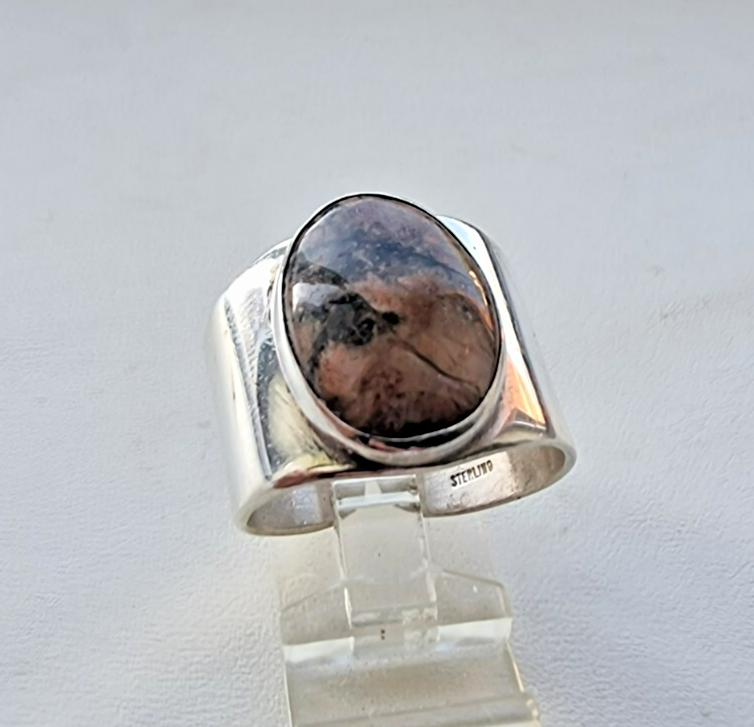PF VINTAGE 925 STERLING SILVER NATURAL AGATE AGJUSTABLE RING SIZE APPROX. 8.5