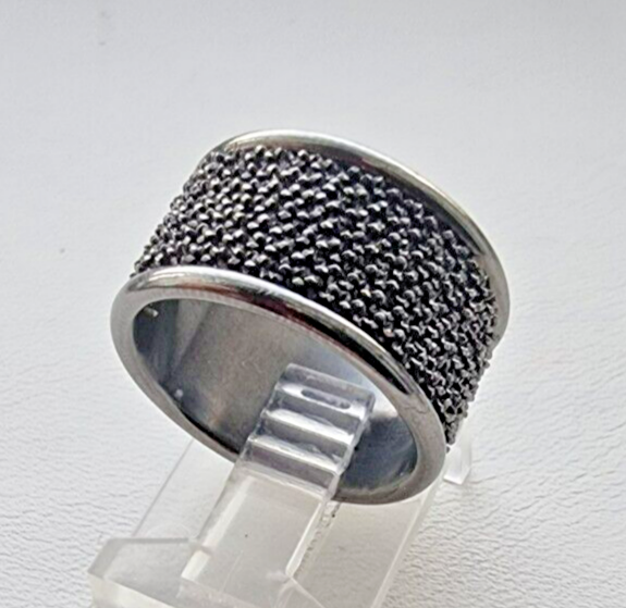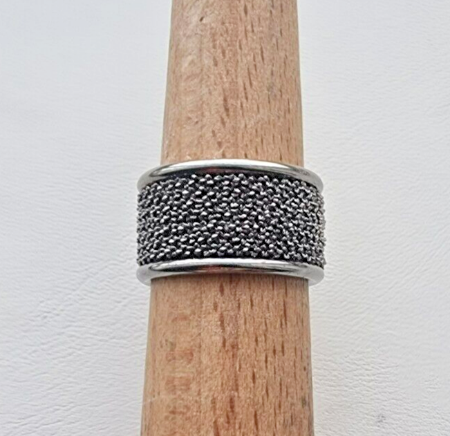 MAGNIFICENT VINTAGE ITALIAN WIDE 925 STERLING SILVER BLACK RHODIUM RING SIZE6.25