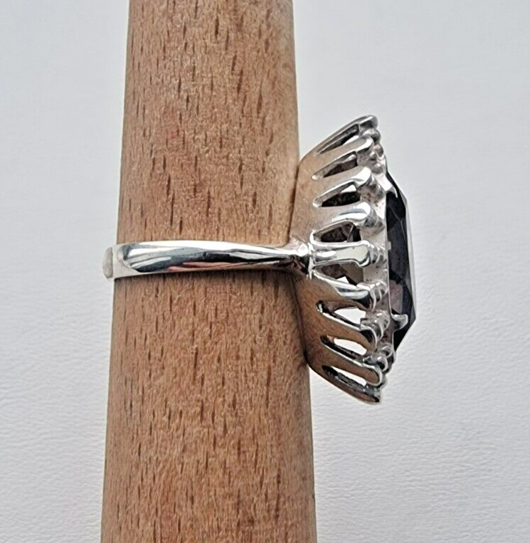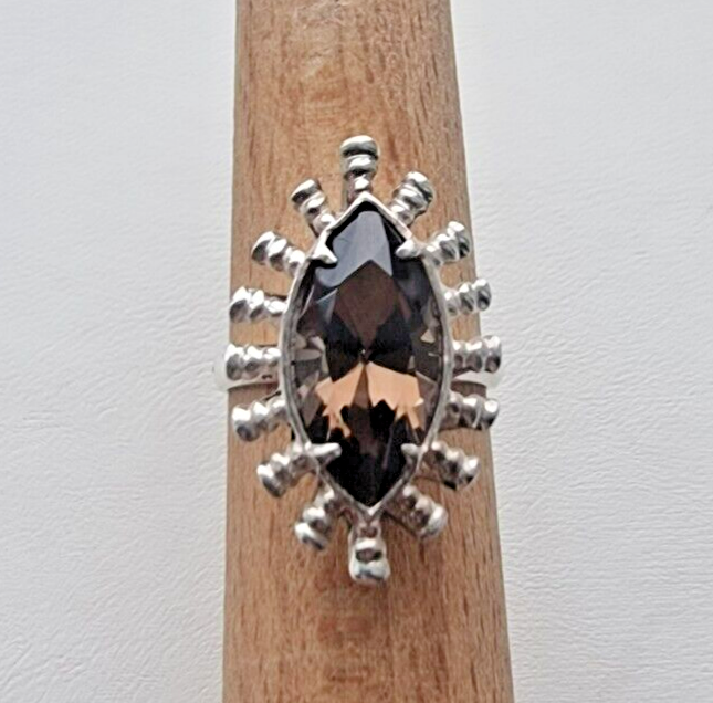 VINTAGE RARE 925 STERLING MARUISE SHAPE 15x8mm SILVER SMOKY TOPAZ RING SIZE 6.25