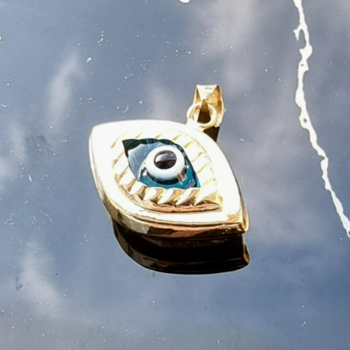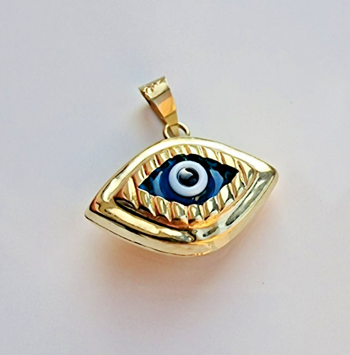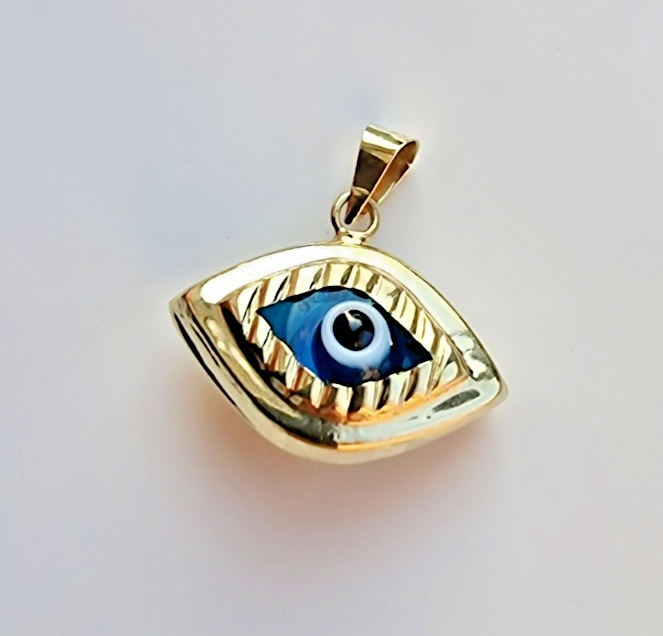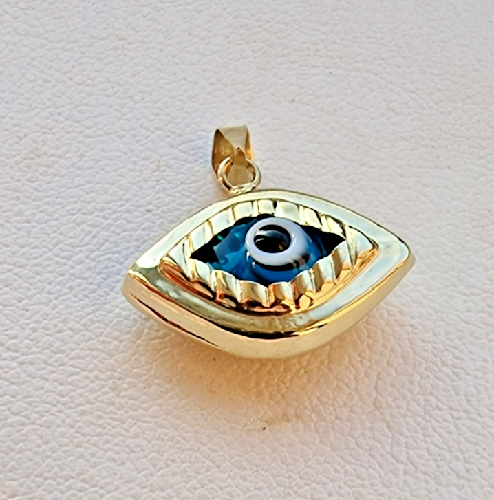 14K YELLOW GOLD BLUE MURANO GLASS EVIL EYE CHARM PENDANT 1.2 gram
