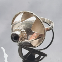 MODERNIST RARE 925 STERLING SILVER BLACK ONYX RING SIZE 7.5