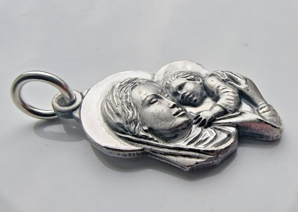 CREED VINTAGE 925 STERLING SILVER MADONNA AND CHILD CATHOLIC MEDAL PENDANT