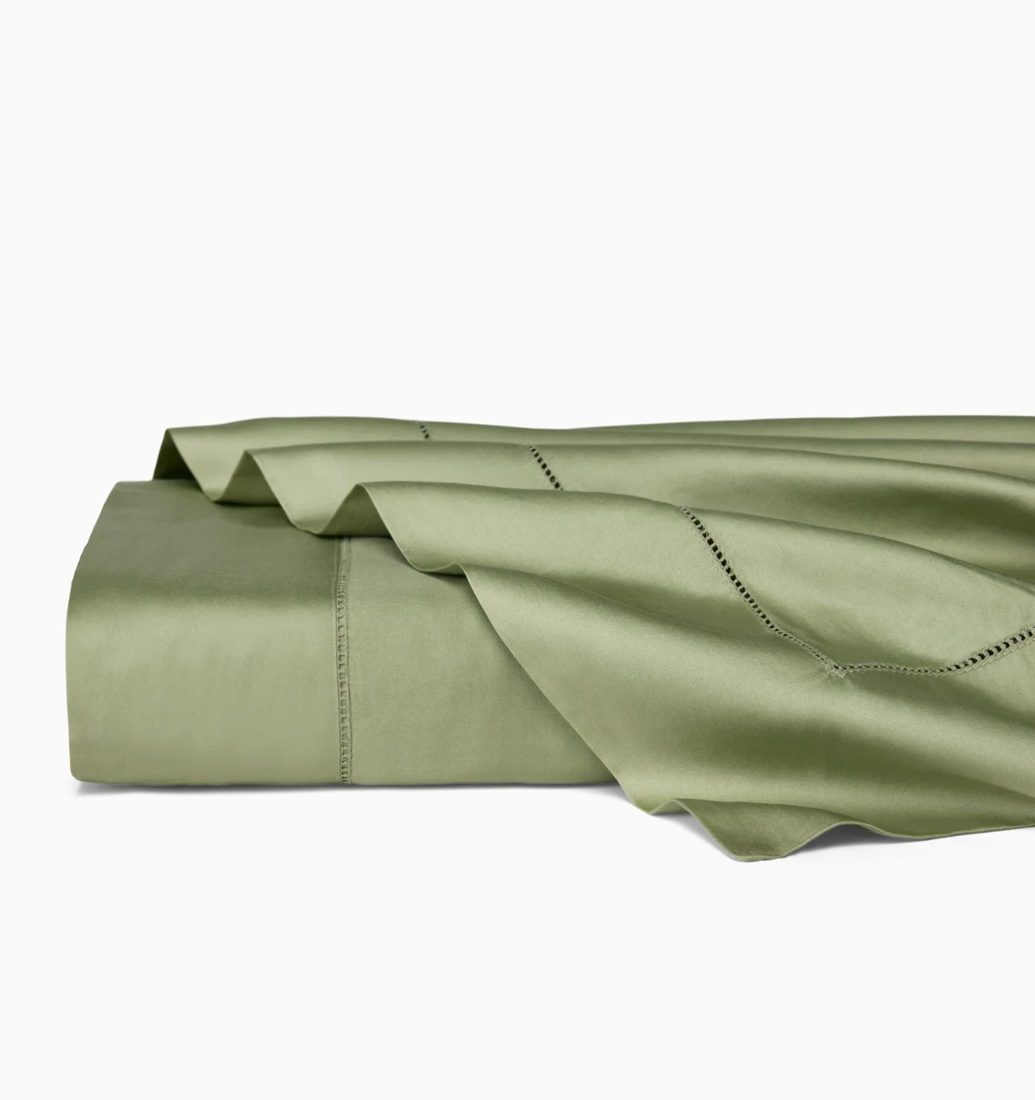 Sferra Isabella Willow Green King Sheet Set 4 PC Solid Cotton Percale Italy NEW