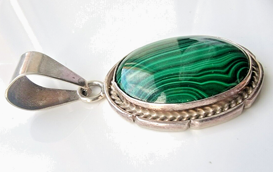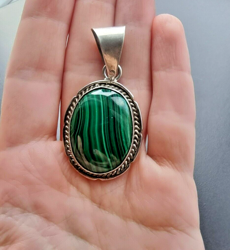 LARGE EXOTIC 925 STERLING SILVER MALACHITE PENDANT