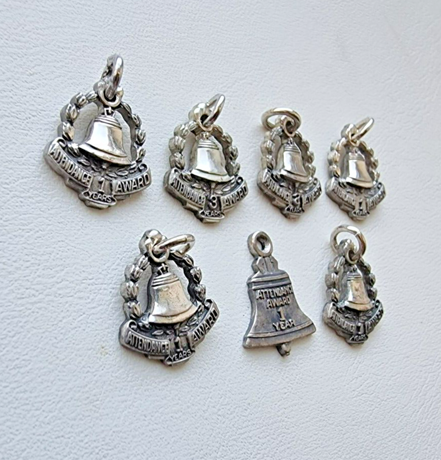 VINTAGE 925 STERLING SILVER LOT 7 CHARMS . ATTENDANCE AWARD