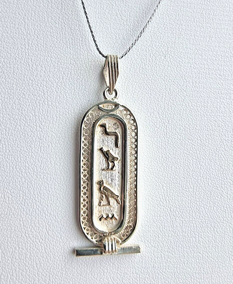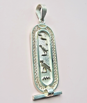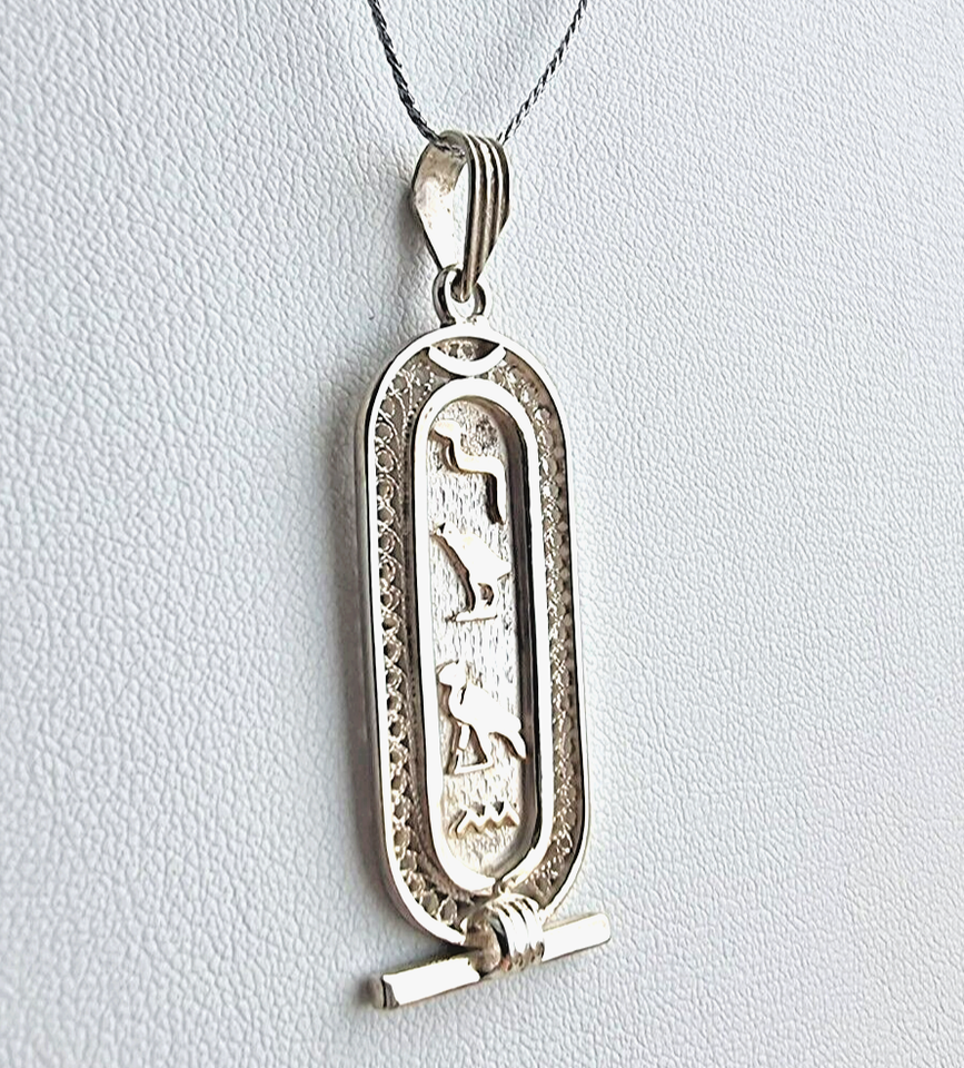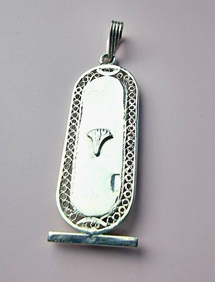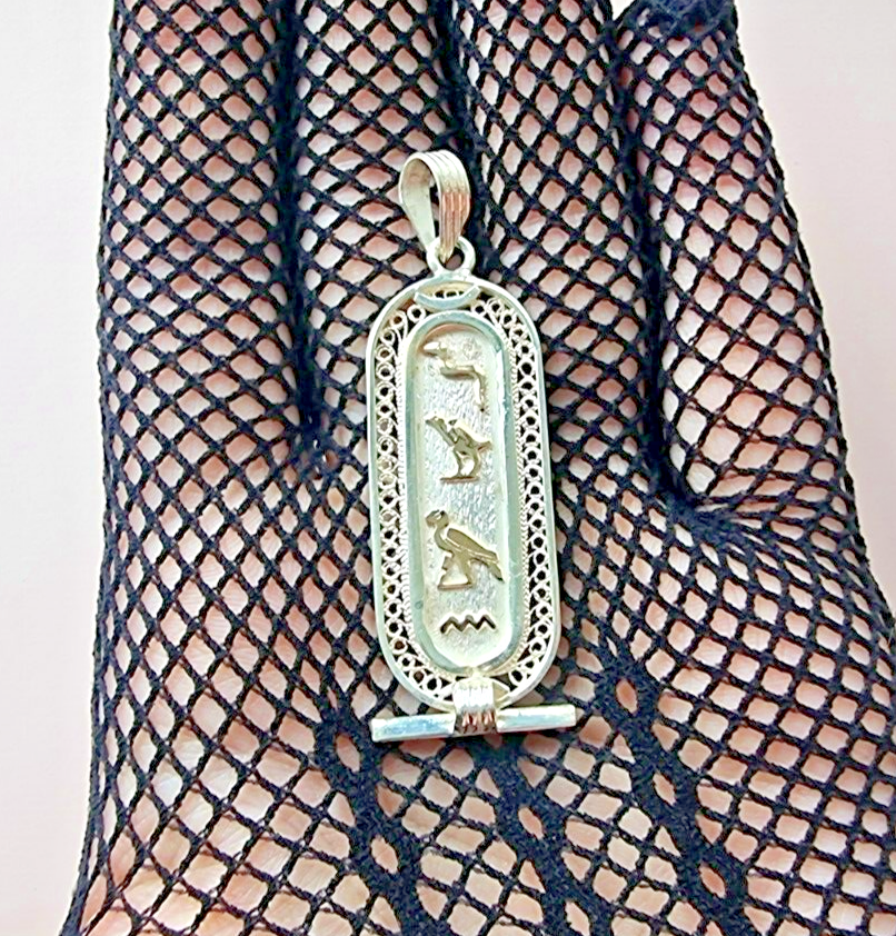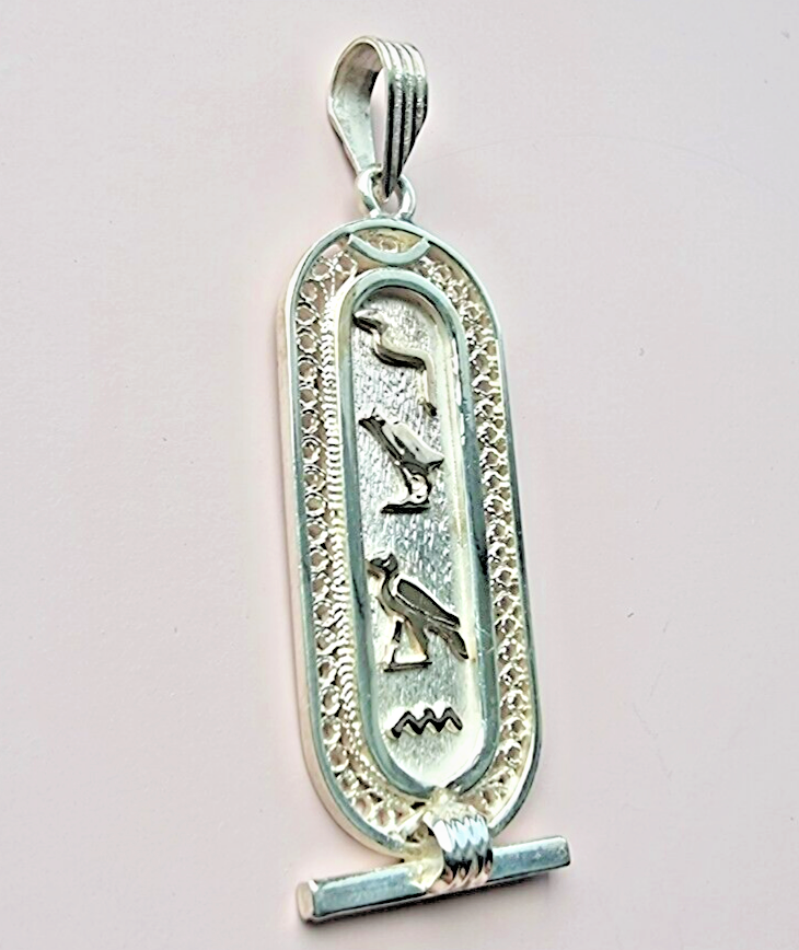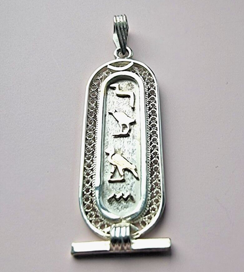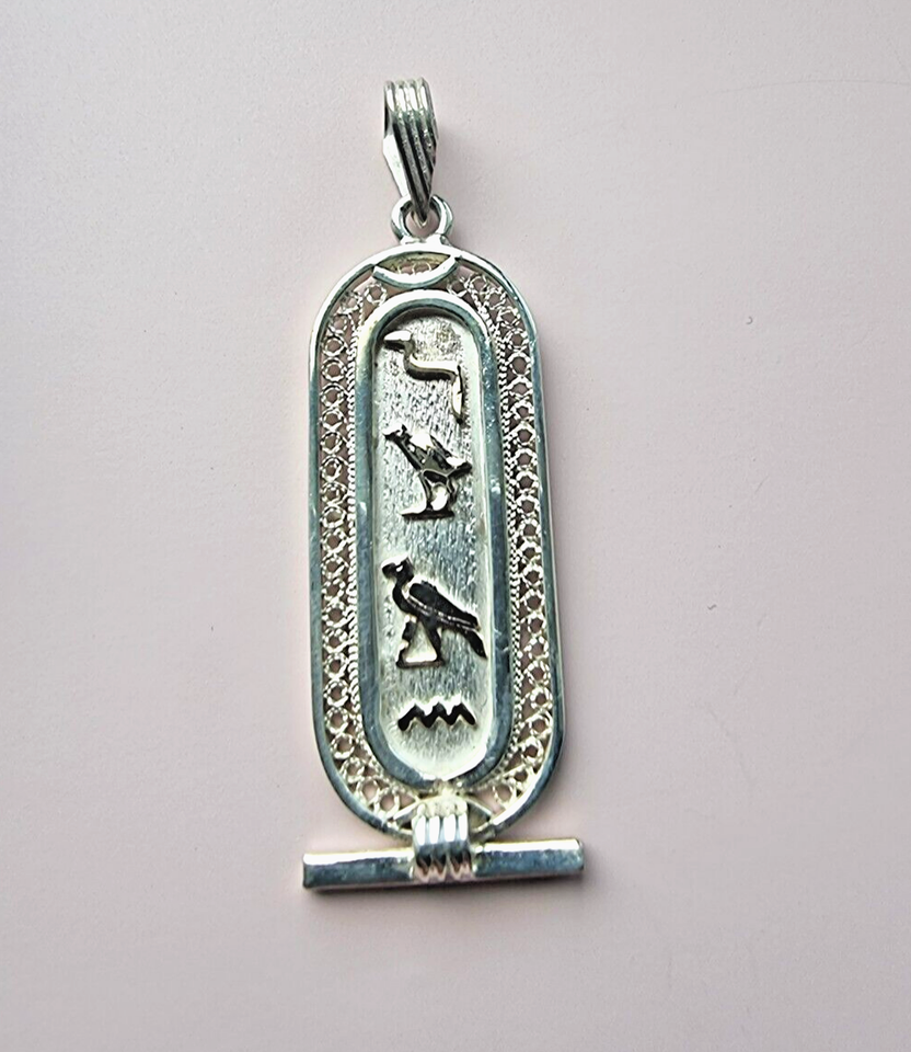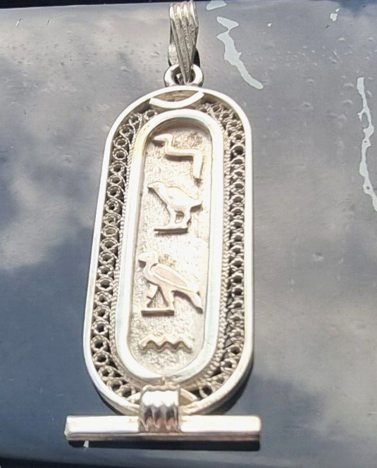 CARTOUCHE 925 STERLING SILVER VERMEIL HIEROGLYPHS ANKH CLEOPATRA PENDANT EGYPT