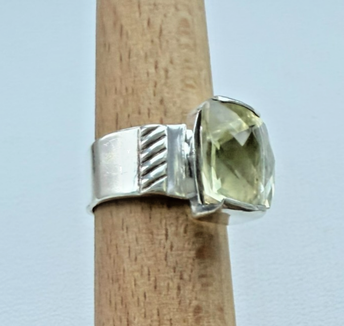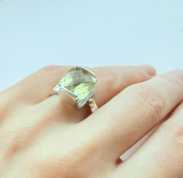 BIJOU 925 STERLING SILVER AND 14KT GOLD 15x12 mm. LEMON TOURMALINE RING SIZE 9