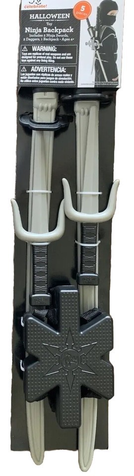 2x Halloween Toy Ninja Backpack Includes: 2 Ninja Swords, 2 Daggers, 1 Backpack