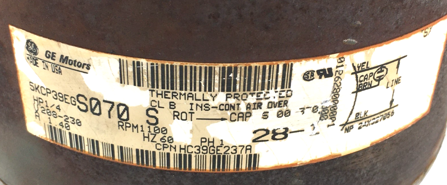 This is GE 5KCP39EGS070S Carrier HC39GE237A Condenser Fan Motor 1/4 HP 208/230V 1100RPM used part.