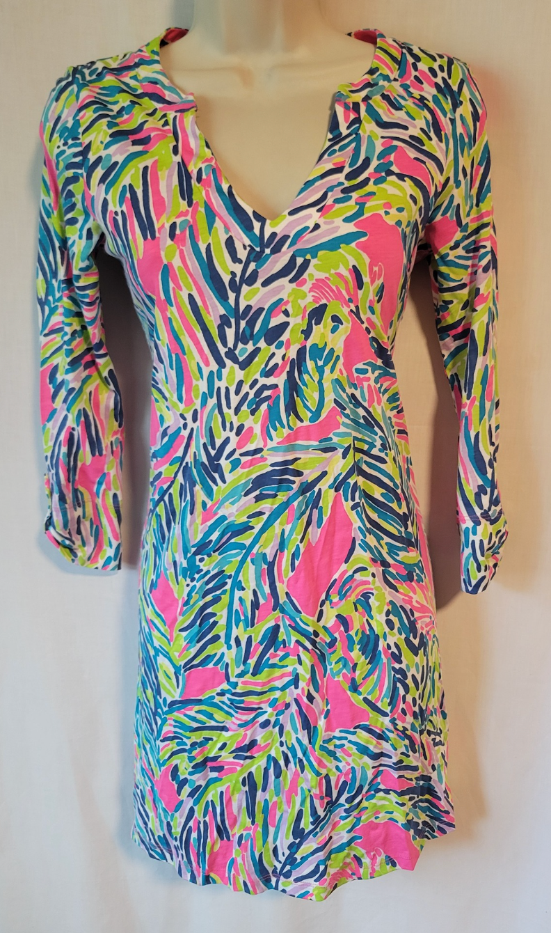 Up for sale is a beautiful Lilly Pulitzer dress size XXS. Gorgeous colors! 100% pima cotton. Great pre-owned condition.