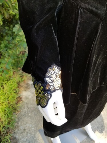 This is a great evening cocktail dress that will fit your curves perfectly. It has hold tone floral beading on the chest and sleeves. Puff fitted sleeve. Peplum waistline with fitted skirt. Back slit to asssit with dressing. Zipper at the back. Fully lined. You can shorten a skirt to customize it for your height and fit. This is obe of a kind dress with many great features.
