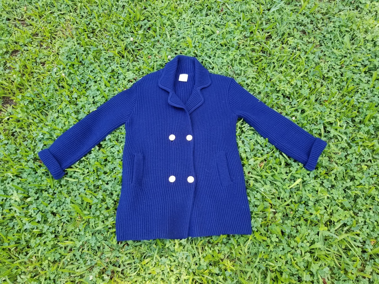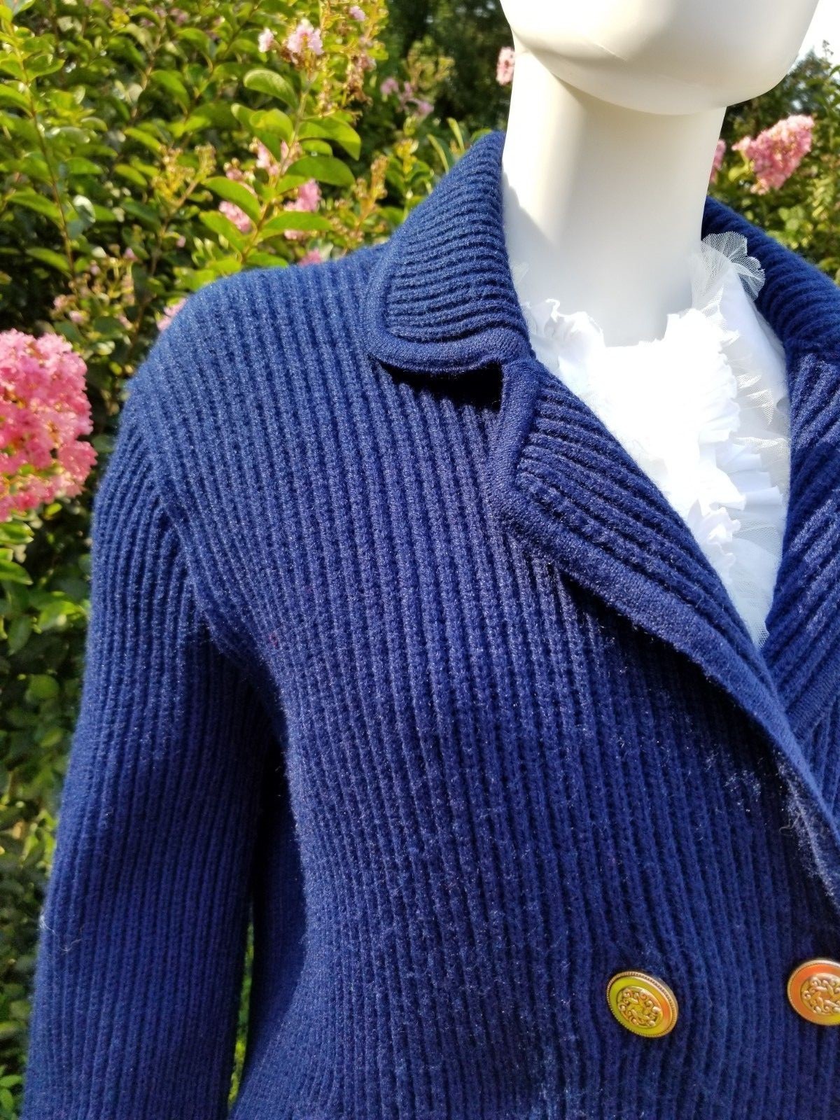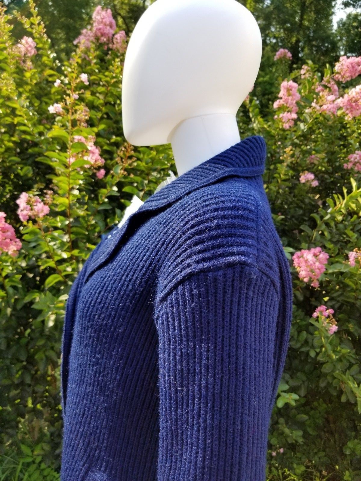 Vintage St. Michael Navy Nautical ribbed double breasted knit cardigan S/M