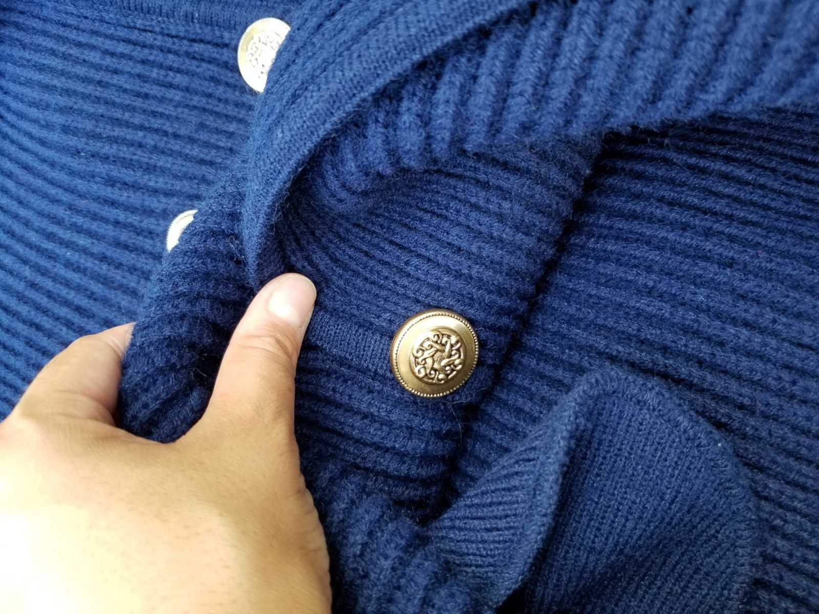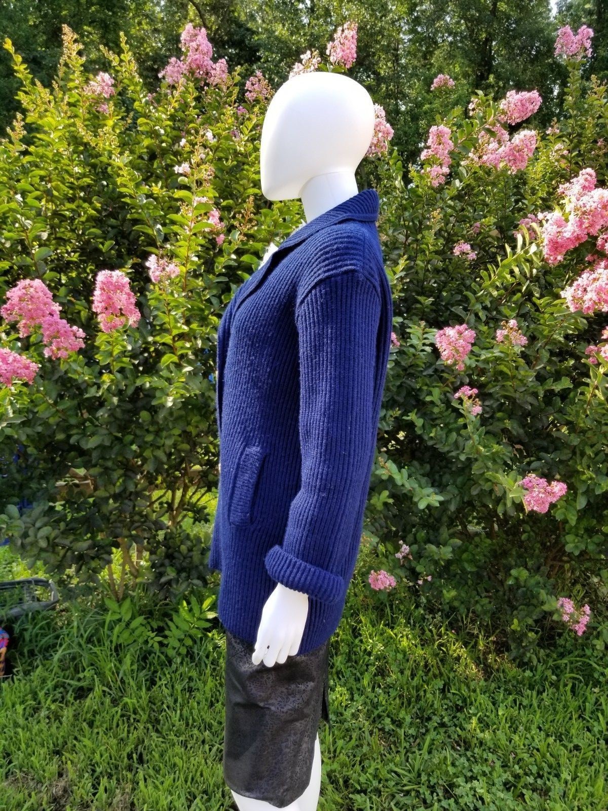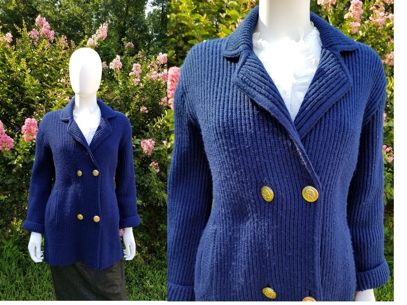 Vintage St. Michael Navy Nautical ribbed double breasted knit cardigan S/M