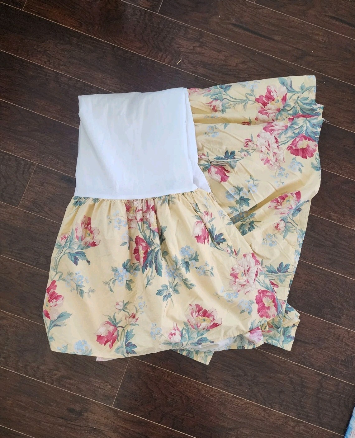 Vintage Ralph Lauren PARSONAGE Yellow Floral King Size Bed Skirt