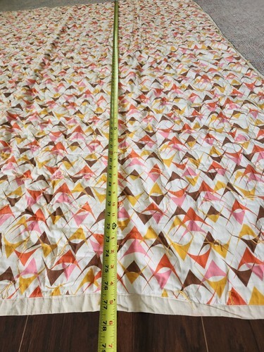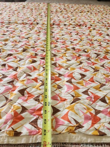 Vintage Mid Century Atomic Cosmic Print Bedspread Quilt Pink, Yellow 64" x 77"