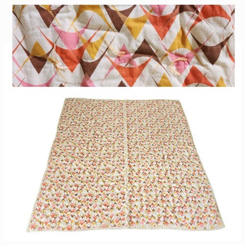 Vintage Mid Century Atomic Cosmic Print Bedspread Quilt Pink, Yellow