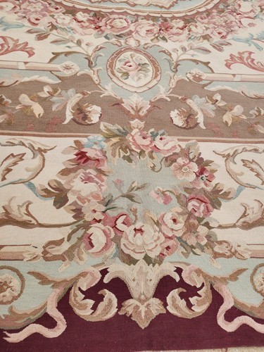 Vintage Aubusson Floral flat weave hand knotted rug, Tapestry 12'x 9'