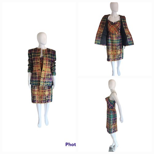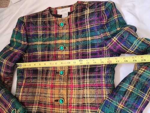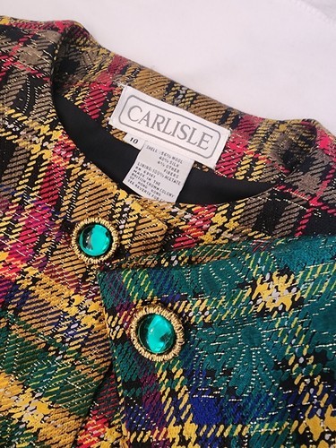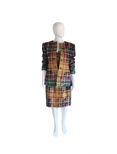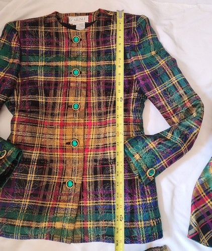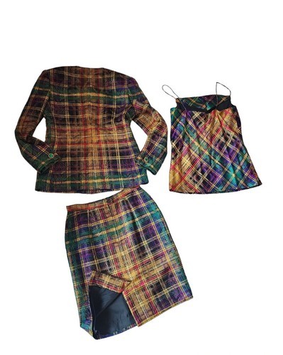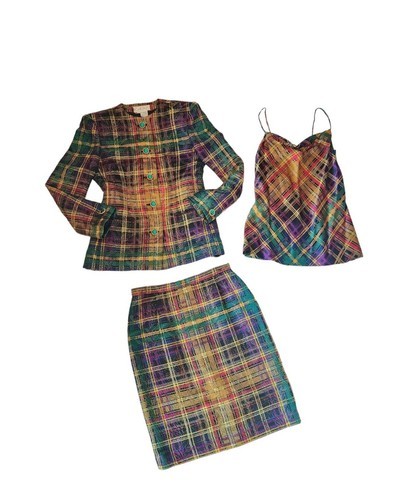 Vintage Carlisle Brocade plaid 3 Pc Skirt Suit wool/silk Dynasty style sz 10