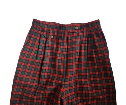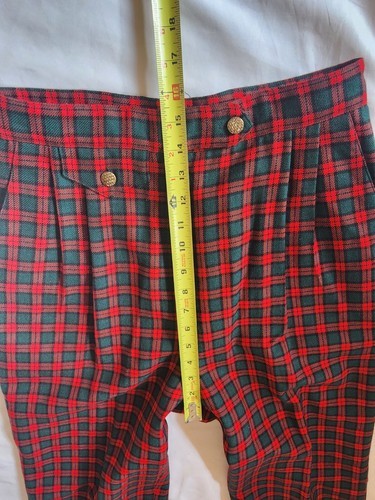 Vintage Carlisle Sport Wool Plaid Red Green Hi Waist Holiday Pants Sz 10,W26"