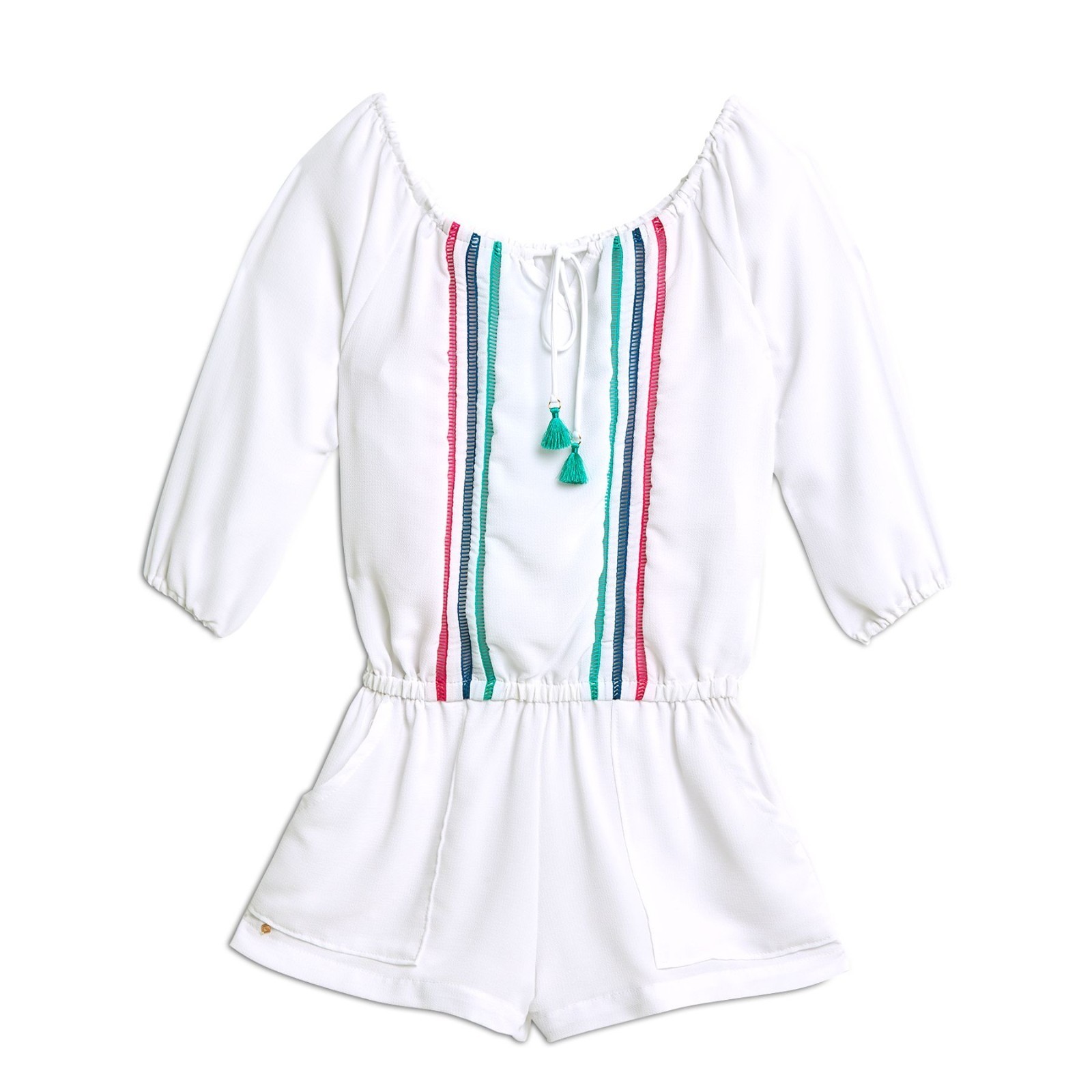 The romper goes boho in this cover-up from Vera Bradley, accented with crochet trim for a pop of color.
