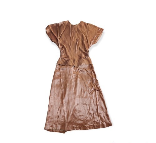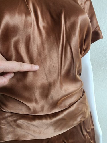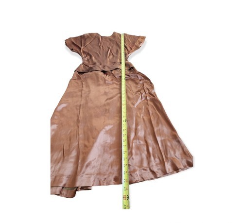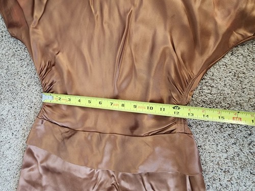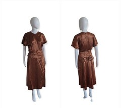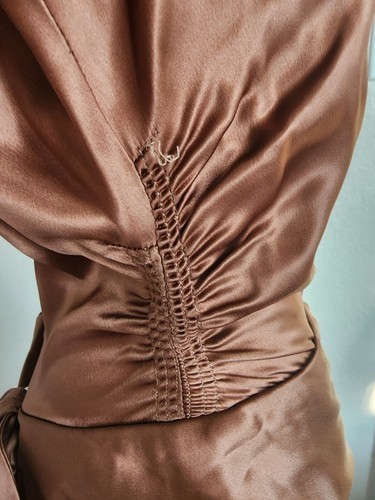 Vintage 40s"Four Star Fashions"brown Ruched Liquid Satin Midi Dress W25"