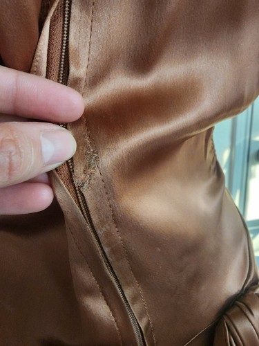 Condition pre loved. Good considering the age of this dress. Has some marks on the chest area as shown in photo #10, some repar near zip lip photo #11. Some loose threads near waist ruched part. Otherwise non smoking, strong bones.