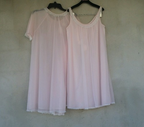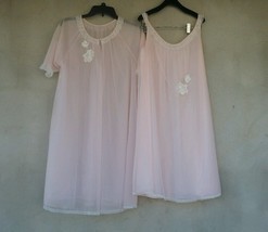 Vintage 1950s Vanity Fair Tricot Nylon Pink Sleep Nightie/Peignoiret 2pc set XS