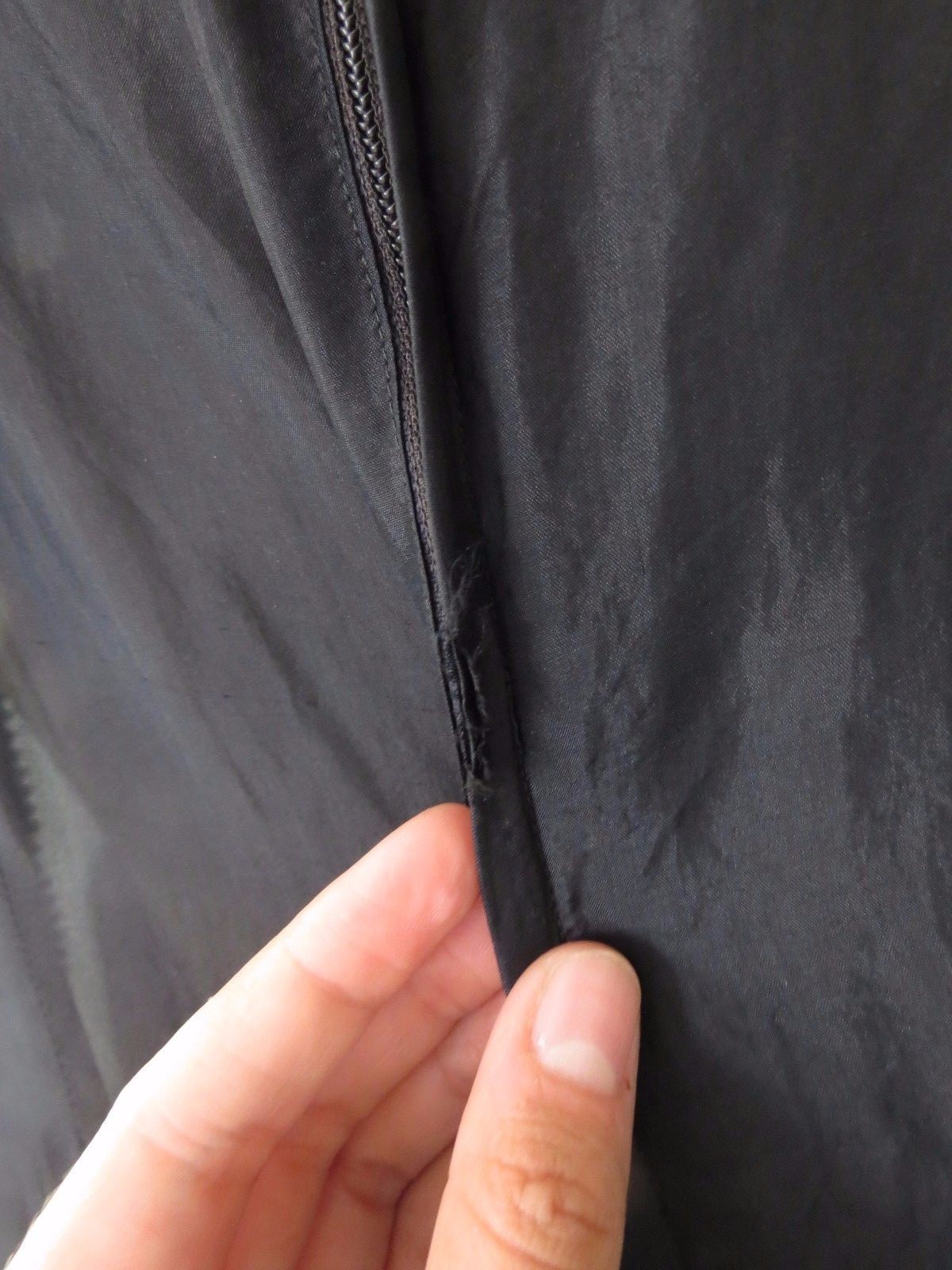 Dress shows more wear including some two little moth holes, see pic #7,8. Also close to zipper fabric is slightly fried due to use and wash.This is a great piece of fashion history and being 60 years old condition is wearable and good .Can benefit from light fixing but totally can be worn as is. Clean and has no odors or smells.