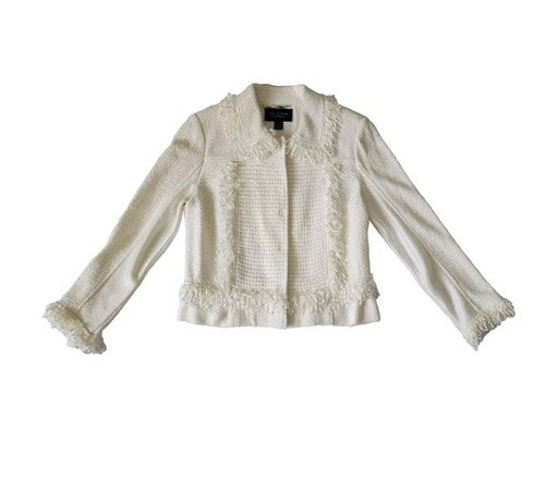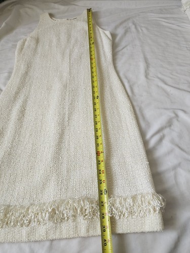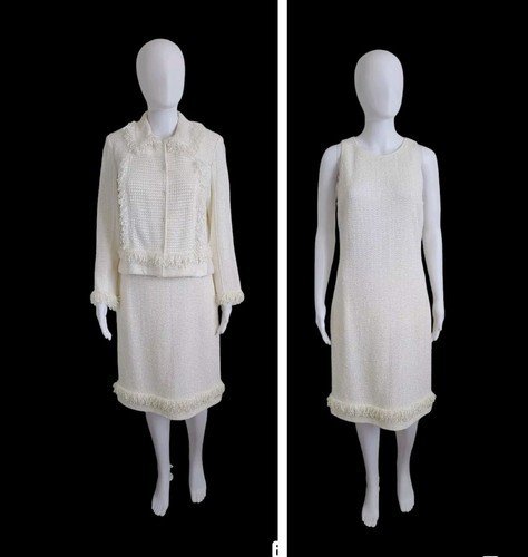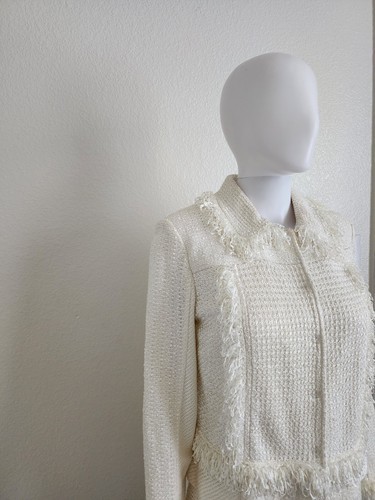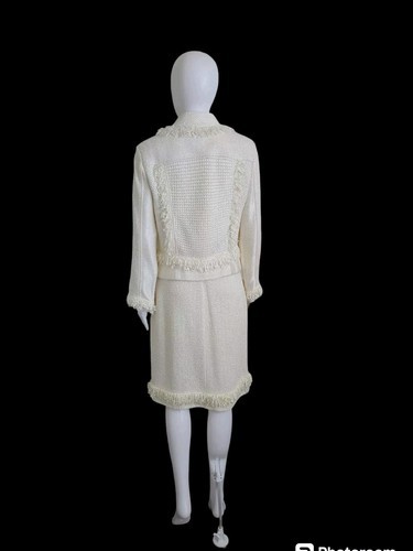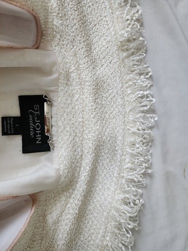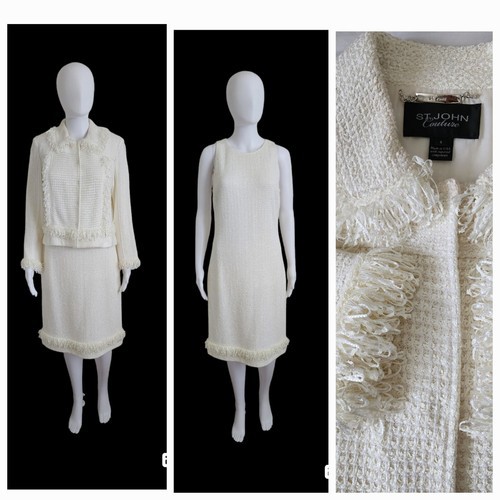 St. John Couture Cream White Tweed Jacket & Dress Set Fringed/Wedding 8