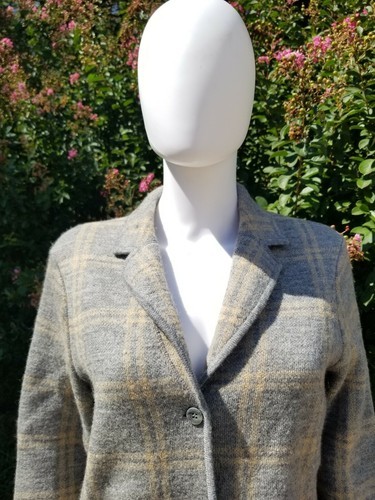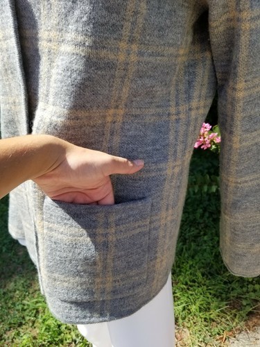 Retro Rena Rowan Wool Cardigan Jacket Gray Yellow Plaid