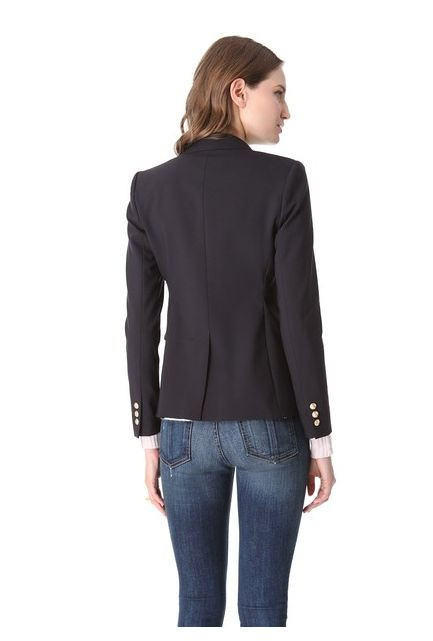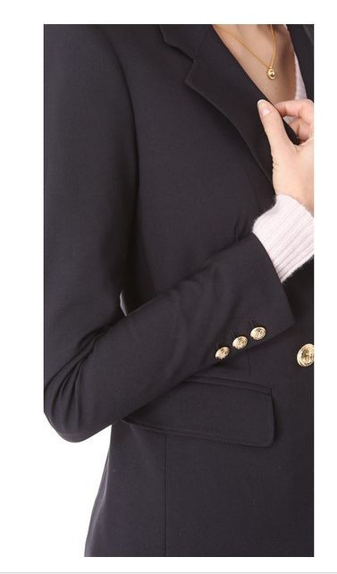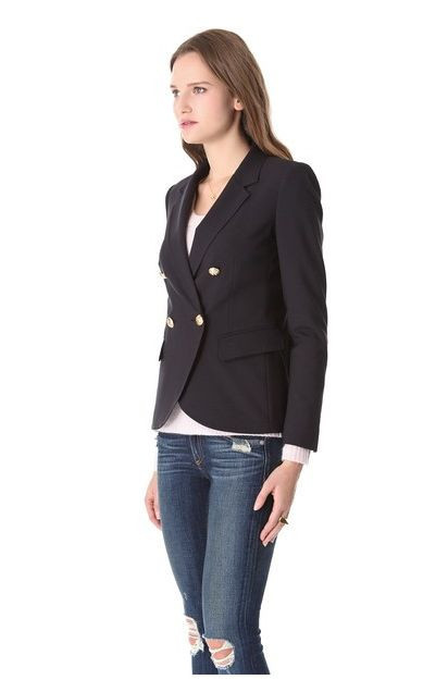 A clean-lined blazer from Juicy Couture, kept smart and polished with a notched collar and flap pockets. Buttons close the double-breasted placket and the cuffs, and padding lifts the shoulders. Long sleeves. Lined. All hardware is gold tone and Anchor embossed.