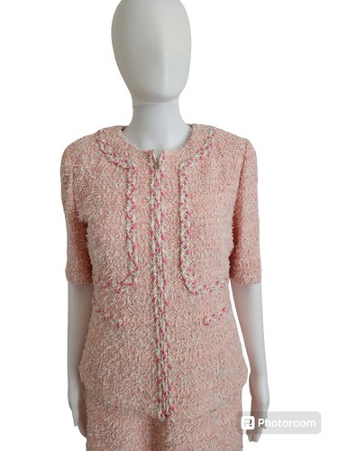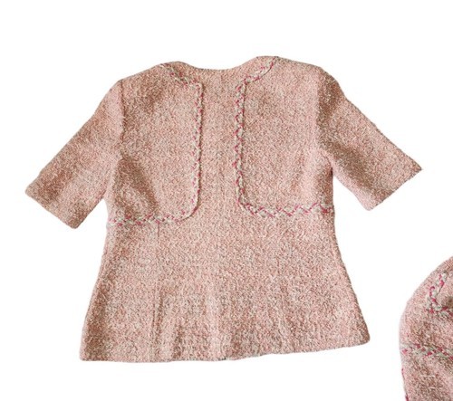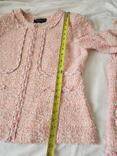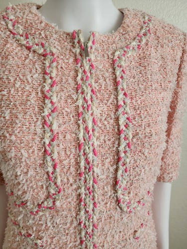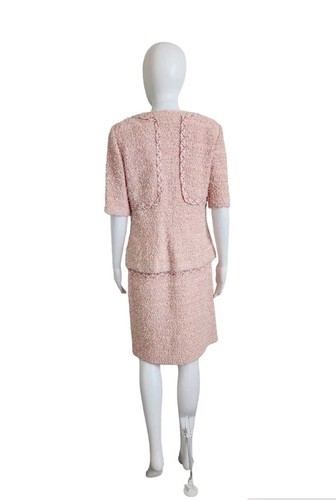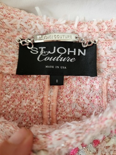 ST.JOHN COUTURE PINK Silver sparkle Eyelash Tweed Jacket & Dress set 8
