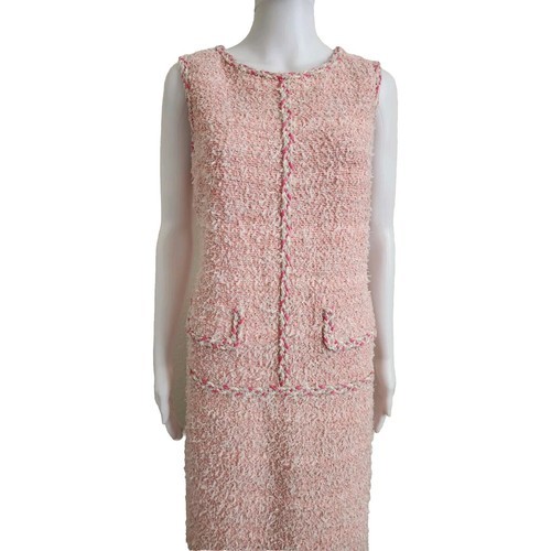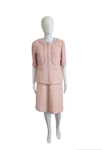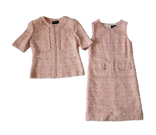 ST.JOHN COUTURE PINK Silver sparkle Eyelash Tweed Jacket Dress set