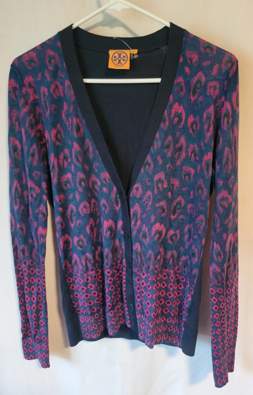 Up for sale is a beautiful Tory Burch cardigan size medium. Item features a button front, gorgeous print and comfortable fit. 100% wool and in great condition.