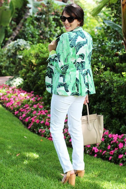 We pair a signature print for spring and summer--this saturated palmetto print--with the exquisite tailoring and sexy feminine cut of our legendary blazers.