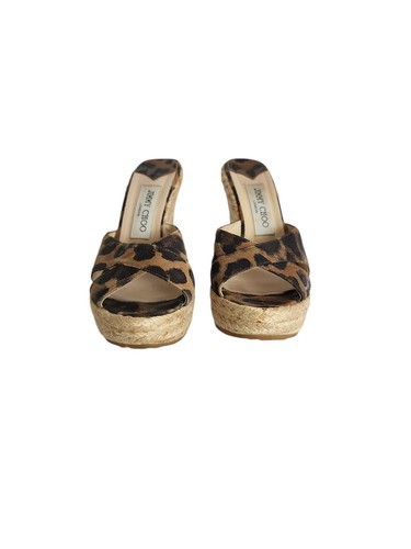 Jimmy Choo Womens Leopard Print Peep Toe Platform Wedge Mules Brown Size 37