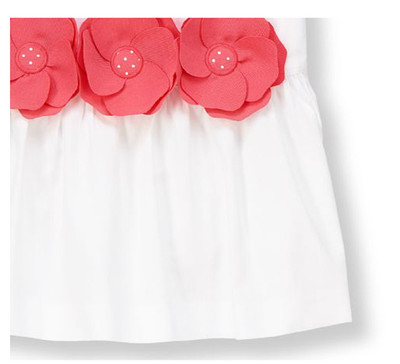 Flower appliques and grosgrain ribbon embellish our soft and summery cotton